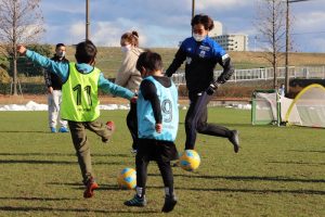最後は一緒に楽しく試合を行い、プロサッカー選手のドリブルやテクニックなどを間近で感じる機会となりました。