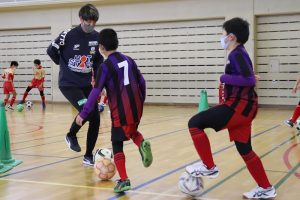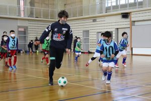 最後は一緒に楽しく試合を行い、プロサッカー選手のドリブルやテクニックなどを間近で感じる機会となりました。