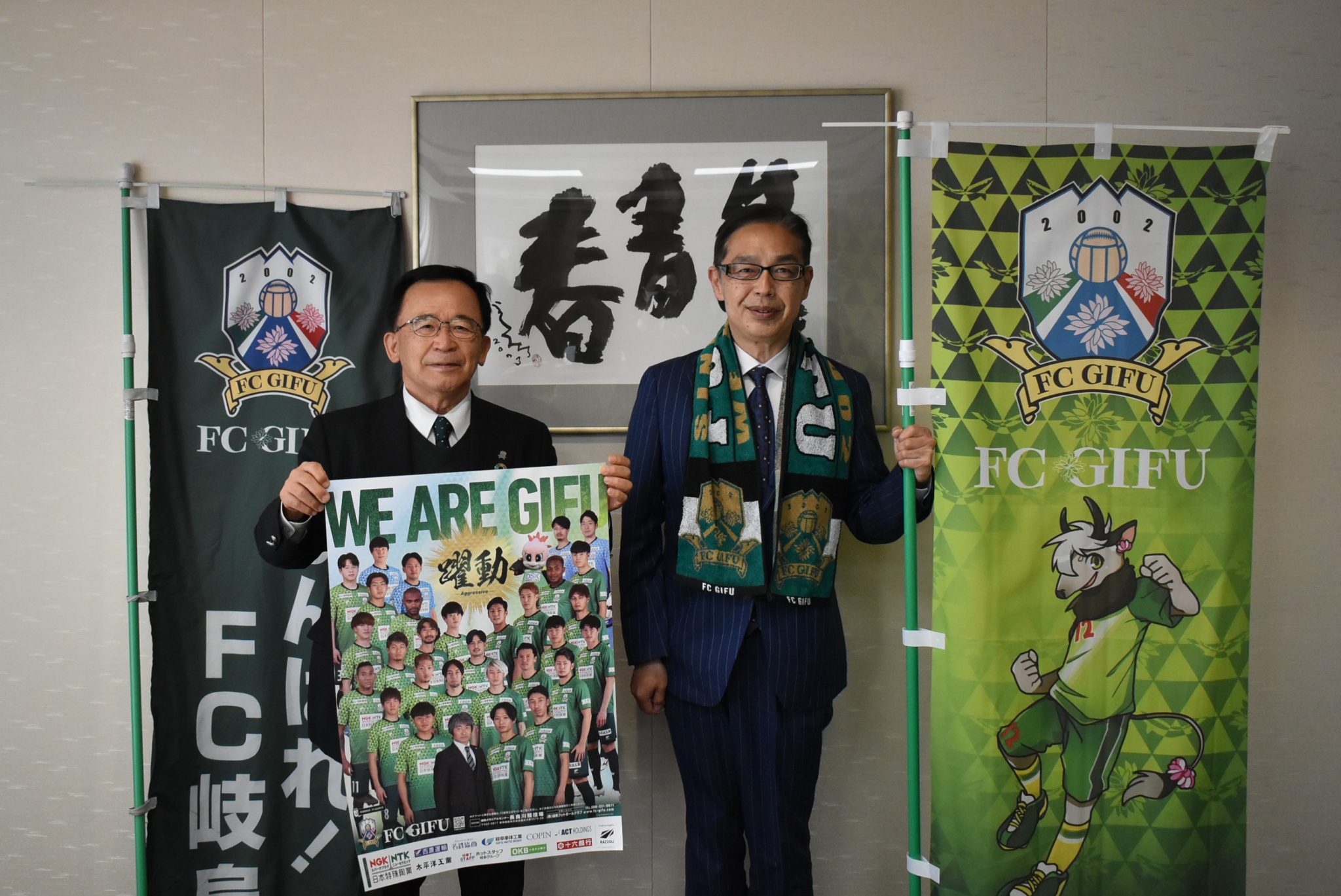5月30日(日)のJ3リーグ第9節、ホームでのY.S.C.C.横浜戦の「笠松町ホームタウンデー」開催にあたり、4月26日(月)笠松町役場にて、宮田 博之 社長が、古田 聖人 笠松町長を表敬訪問させて頂きました。