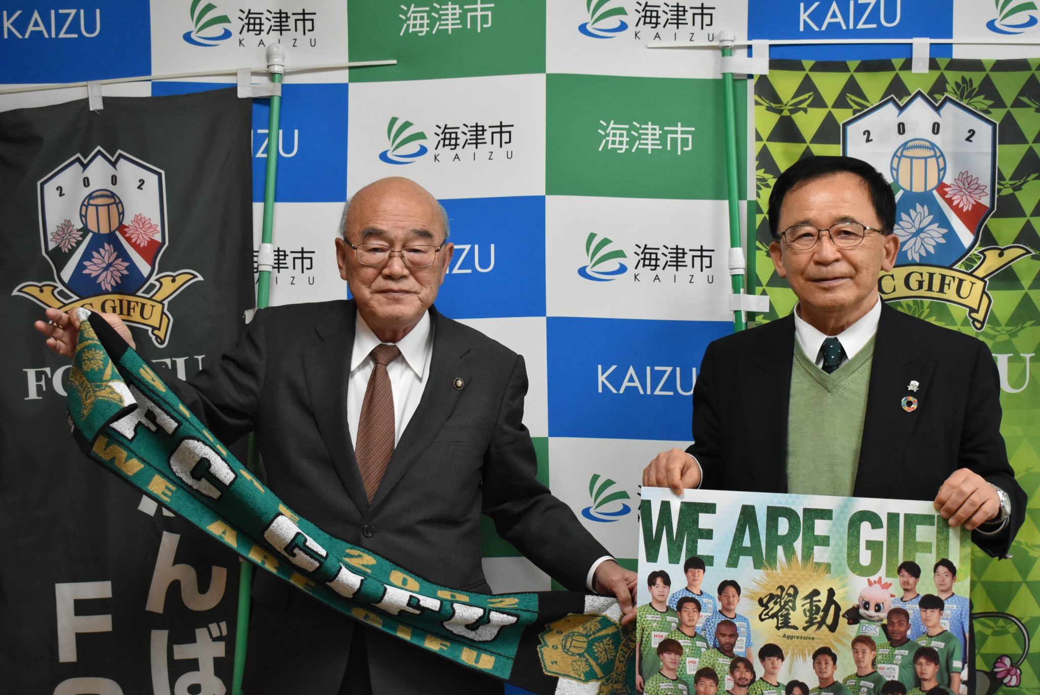 また、海津市の方500名様が無料で観戦できる「感動をともにチケット」のご案内もさせていただき、ぜひ多くの方にスタジアムにご来場いただきまして、選手に応援をいただけますよう、松永市長にお願い申し上げました。