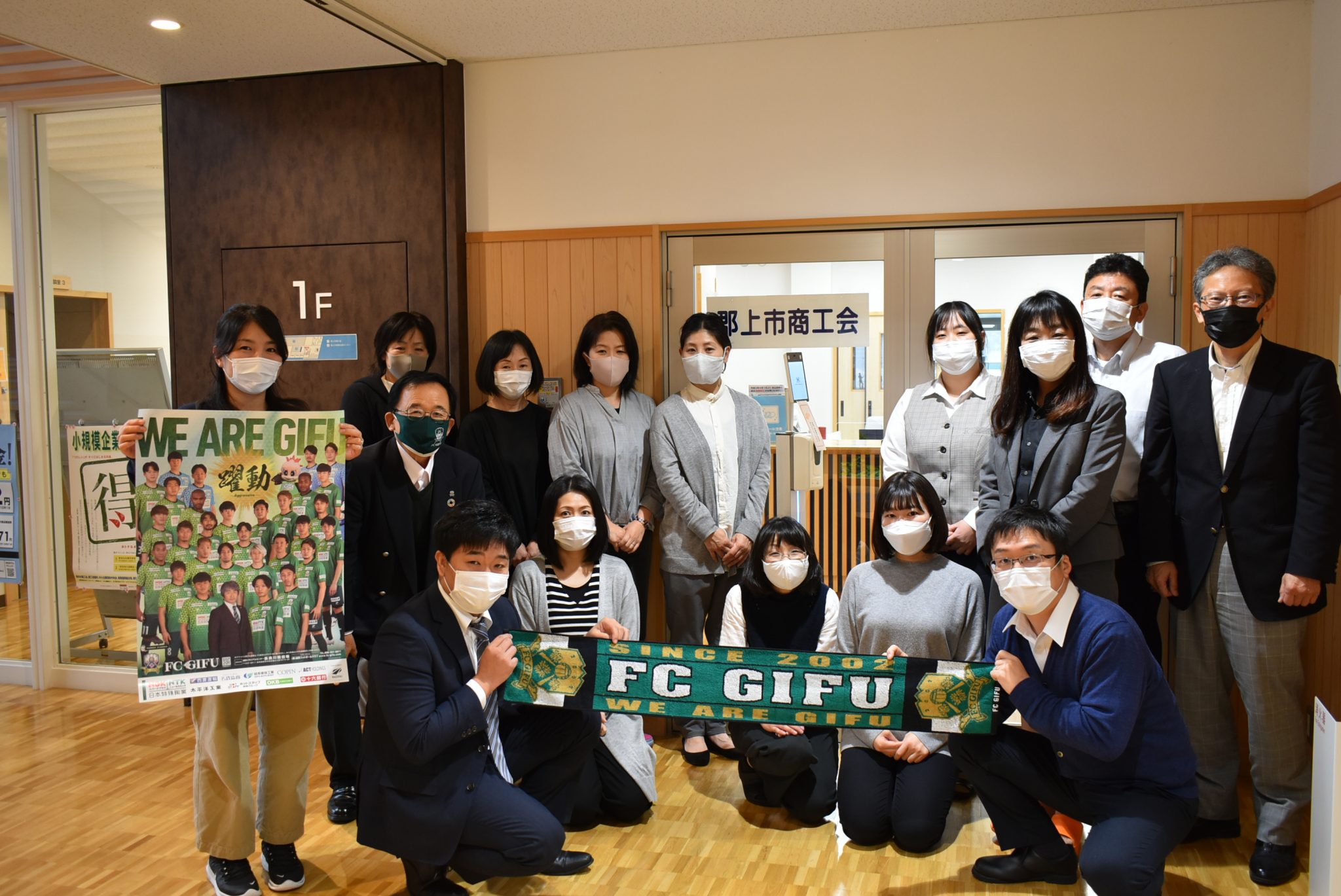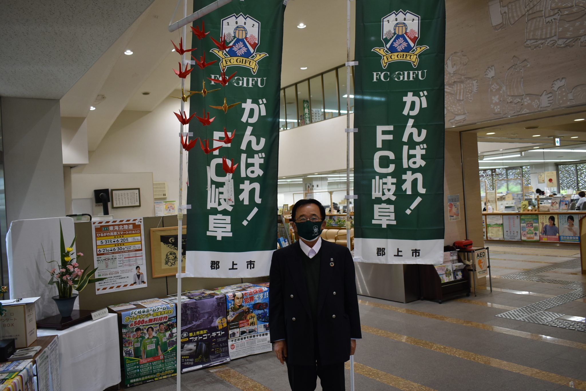 宮田社長からは、J2昇格に向けて戦うチームの状況や鹿児島ユナイテッドFC戦のイベントなどについてお伝えさせていただくとともに、市役所内にのぼりを掲げていただくなど、郡上市を挙げてFC岐阜を応援いただいていることに感謝申し上げました。