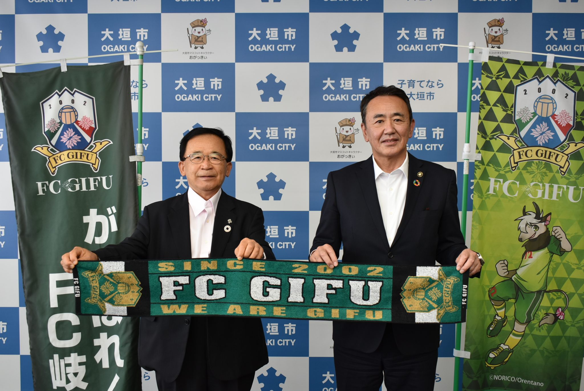 6月27日(日)のJ3リーグ第13節、ホームでの鹿児島ユナイテッドFC戦の「大垣市ホームタウンデー」開催にあたり、5月28日(金)大垣市役所にて、宮田 博之 社長が、石田 仁 大垣市長を表敬訪問させて頂きました。