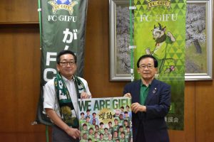 10月2日(土)のJ3リーグ第21節、ホームでのFC今治戦の「各務原市ホームタウンデー」開催にあたり、9月1日(水)各務原市役所にて、宮田 博之 社長が、浅野 健司 各務原市長を表敬訪問させて頂きました。