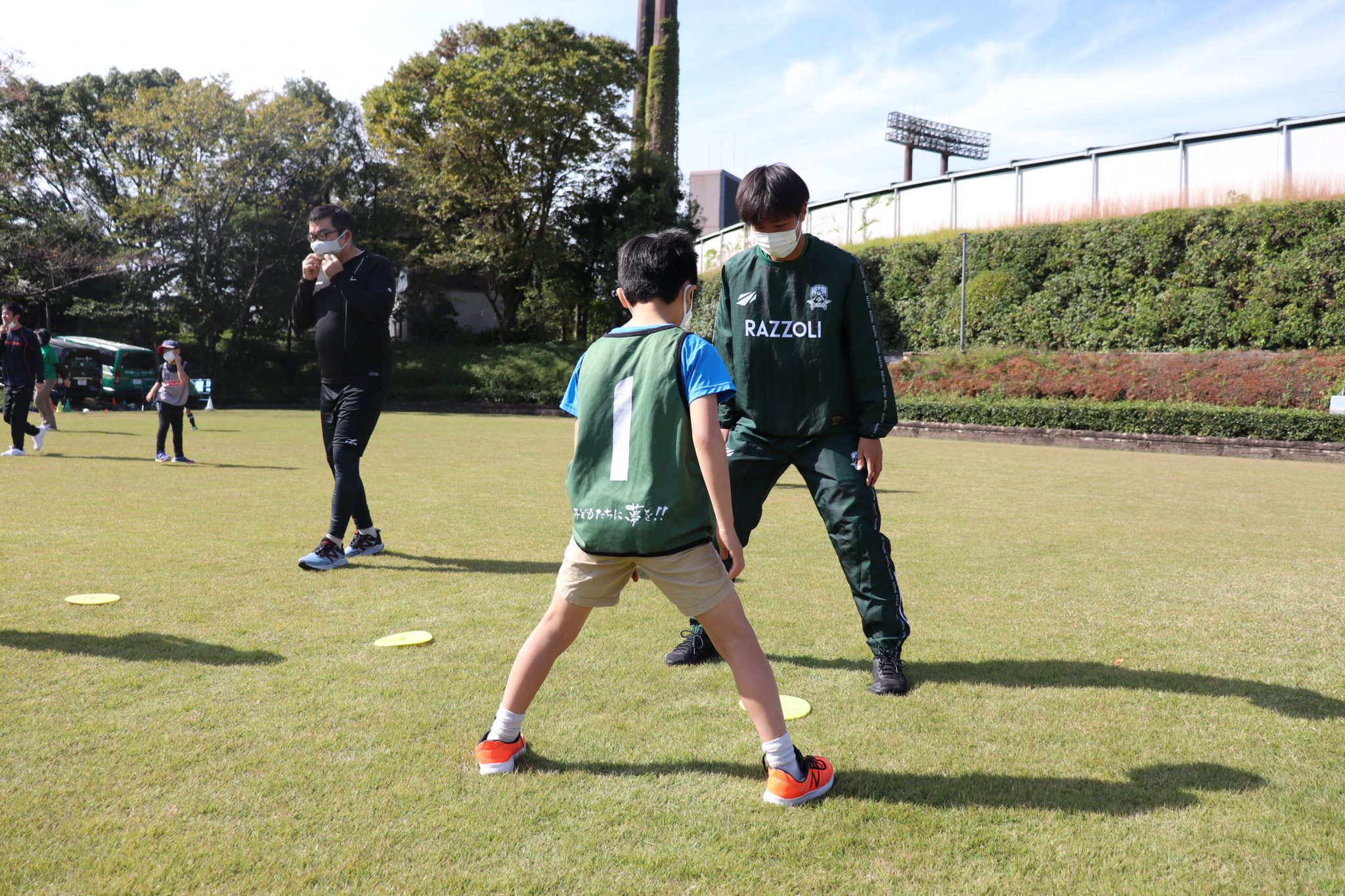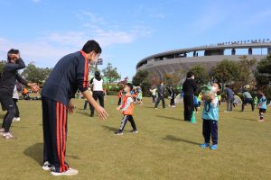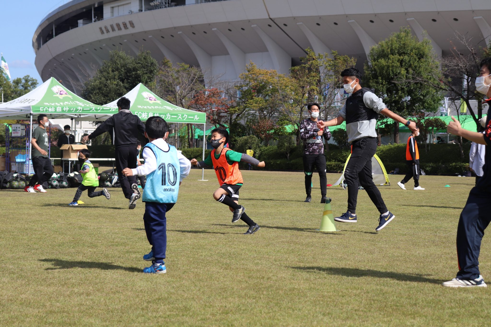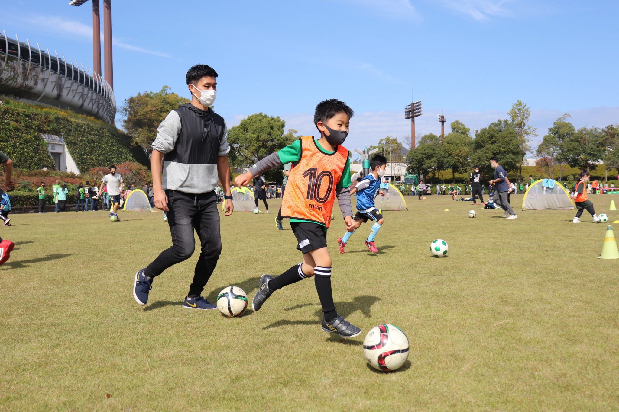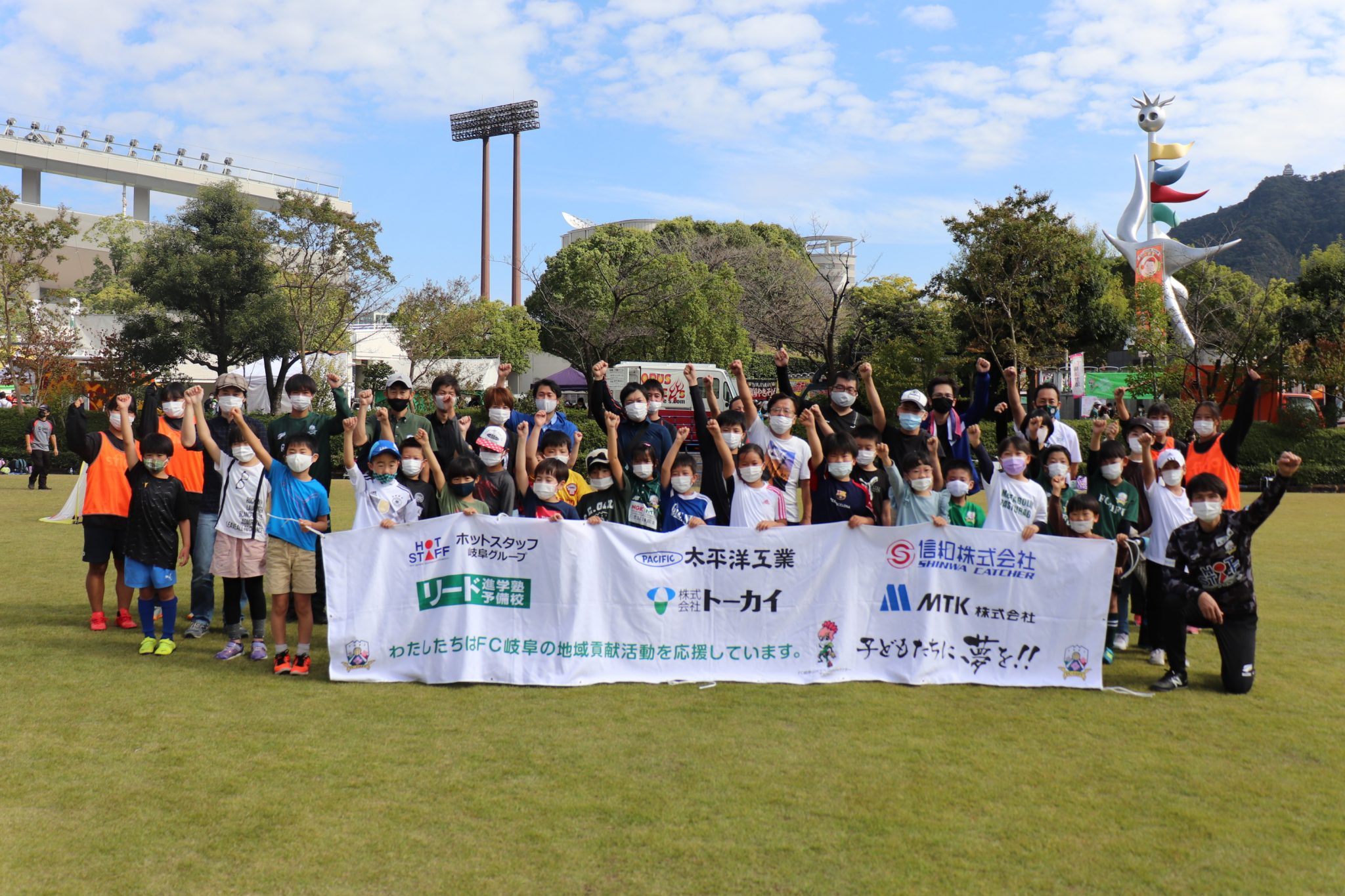 10月24日(日)岐阜市にある岐阜メモリアルセンター 長良川競技場 芝生広場にて、岐阜市主催の「岐阜市ホームタウンデーFC岐阜親子サッカー教室」が開催されました。