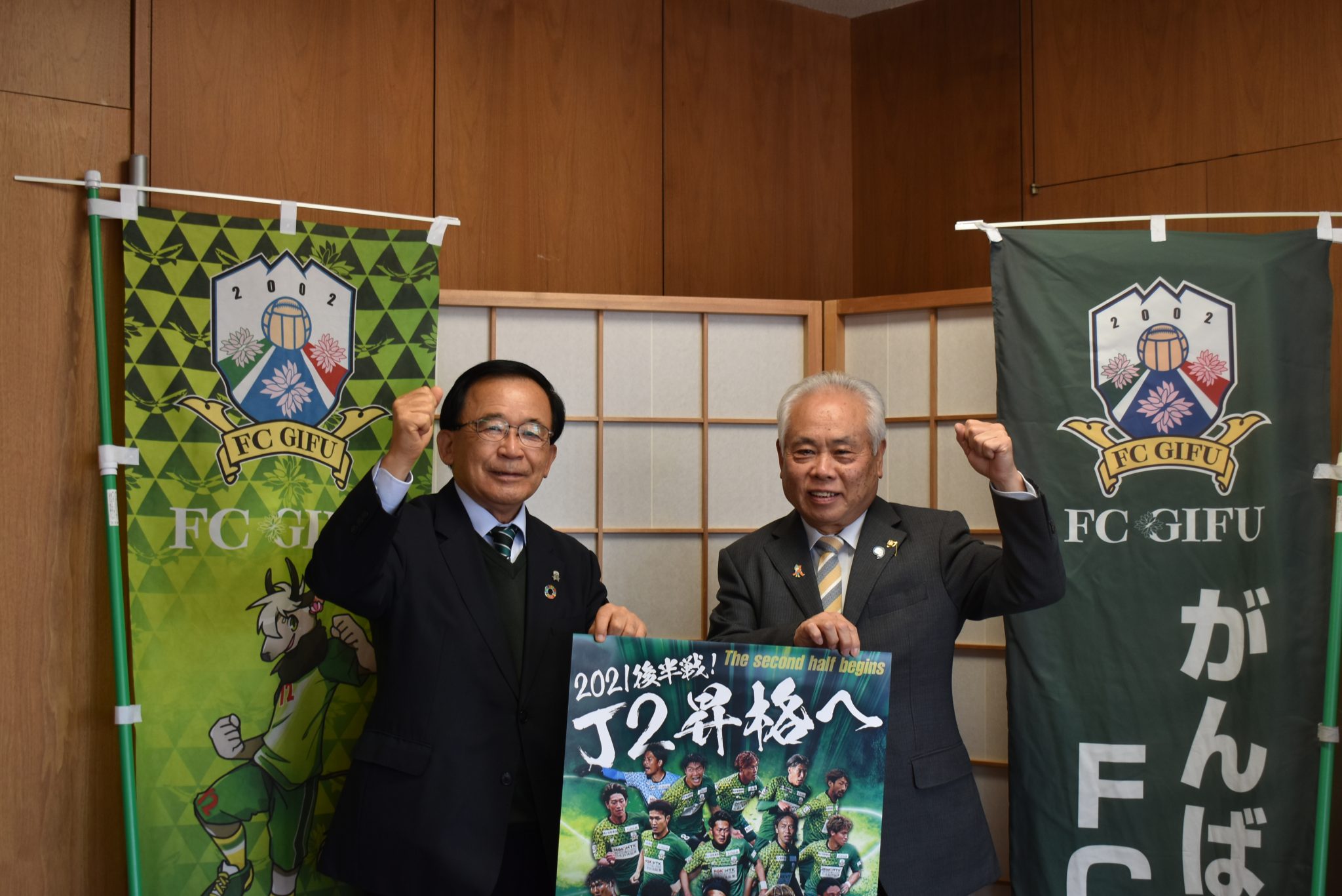 11月28日(日)のJ3リーグ第29節、ホームでの藤枝MYFC戦の「美濃市ホームタウンデー」開催にあたり、11月2日(火)美濃市役所にて、宮田 博之 社長が、武藤 鉄弘 美濃市長を表敬訪問させて頂きました。
