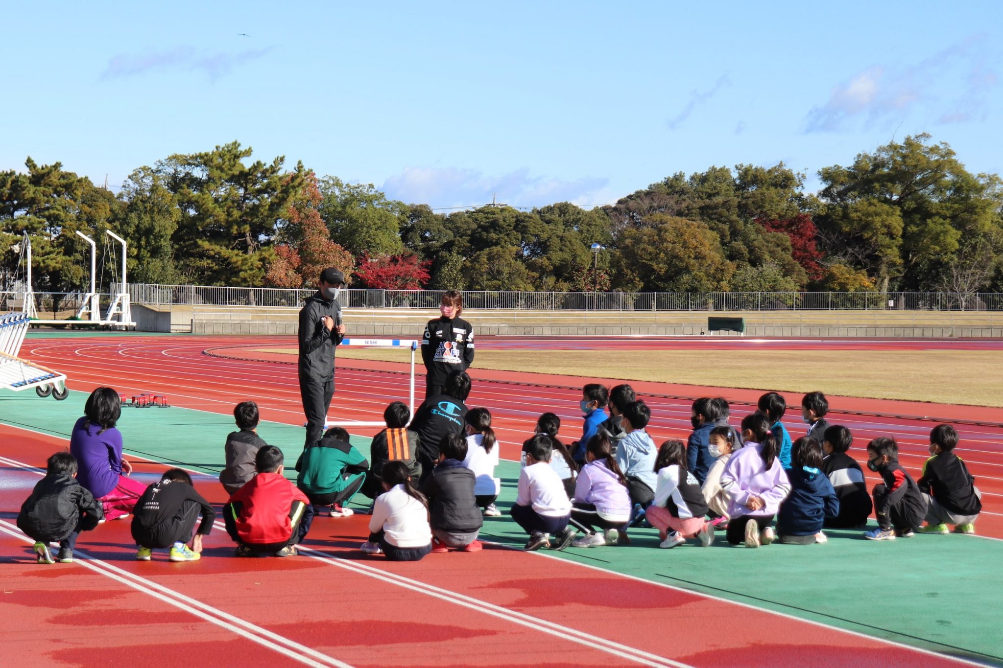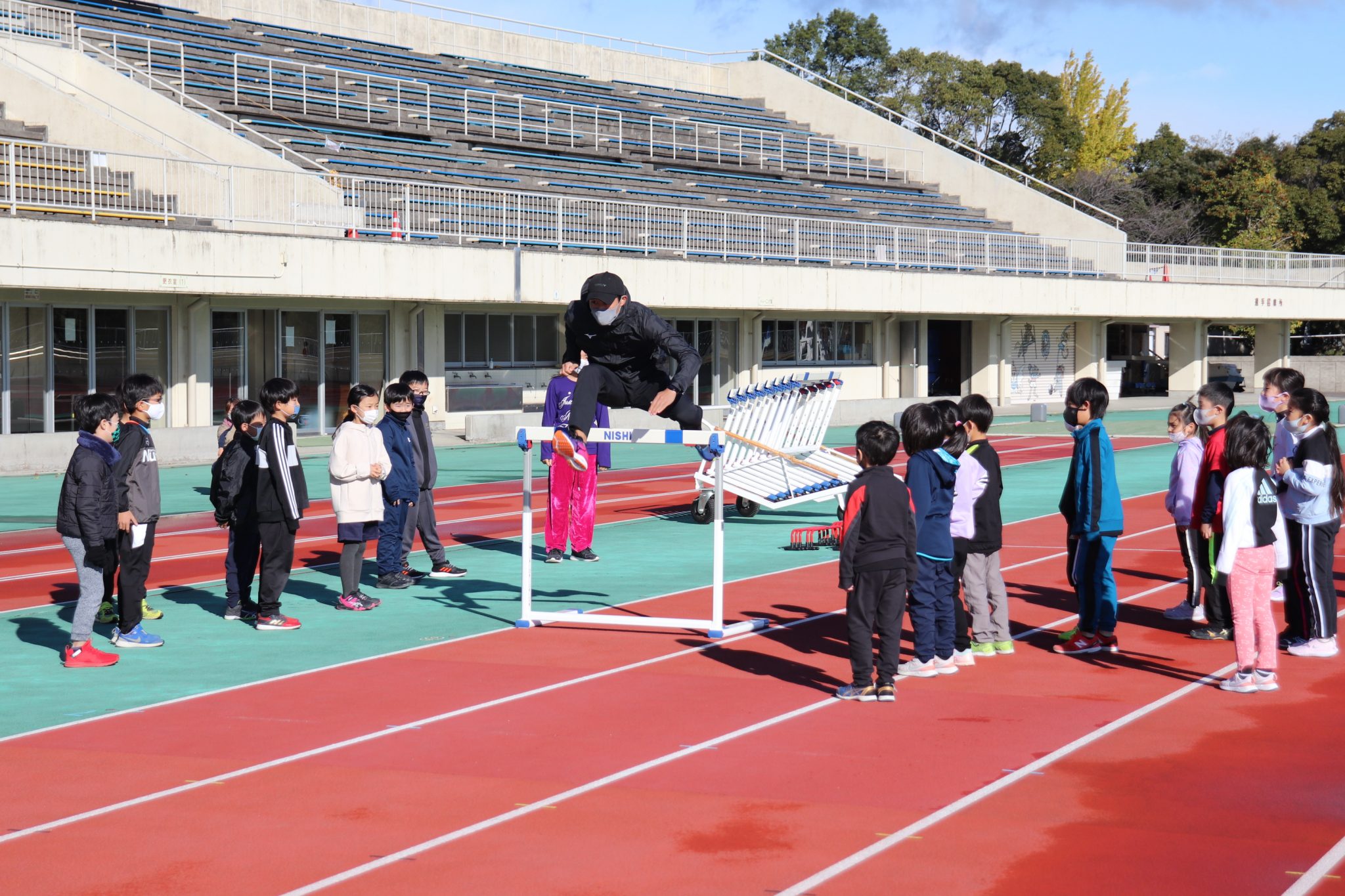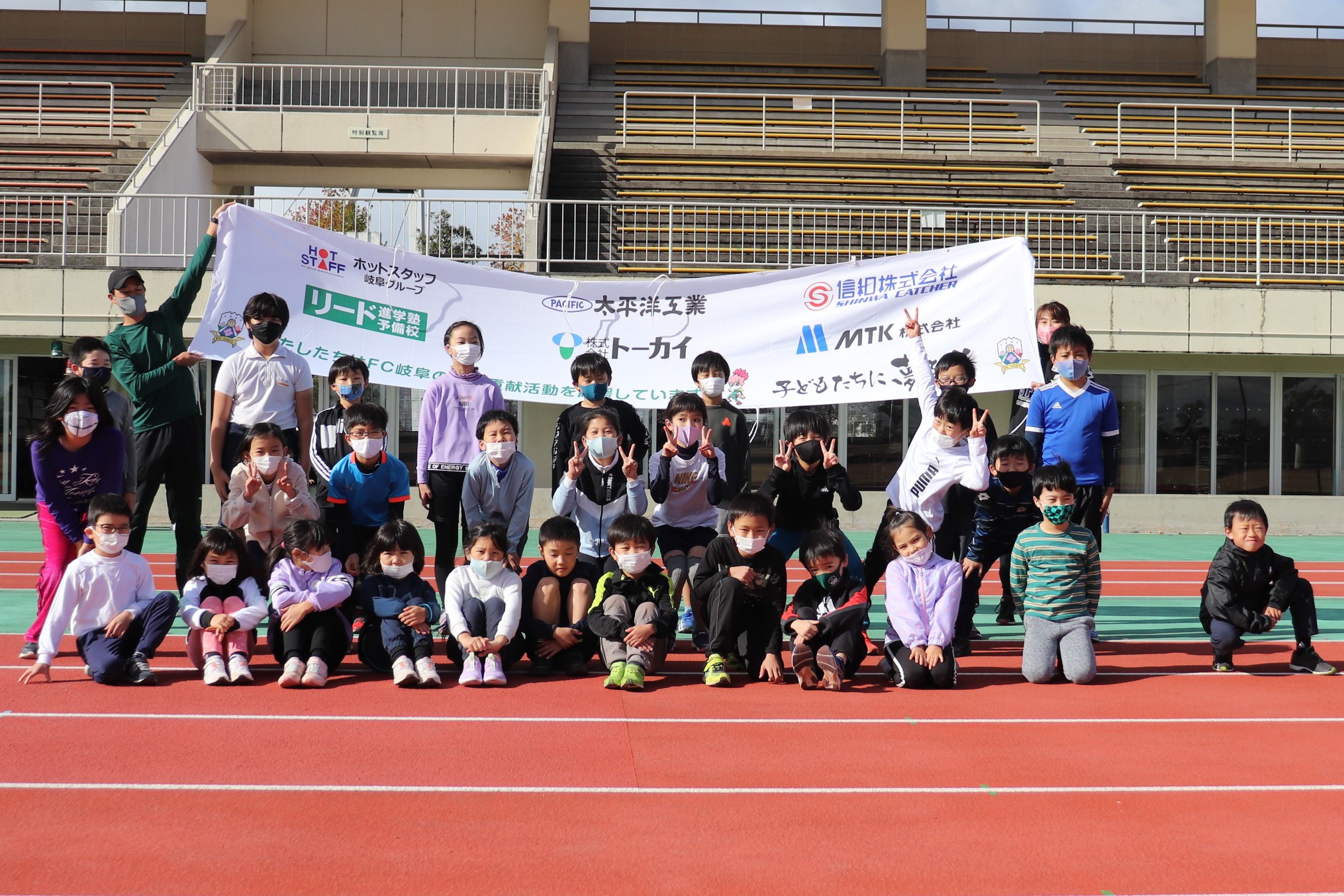 11月27日(土)に、大垣市にある浅中公園陸上競技場にて、和戸 達哉 選手(陸上:紀の国わかやま国体110mH1位)をお迎えし、FC岐阜かけっこ教室を開催しました。