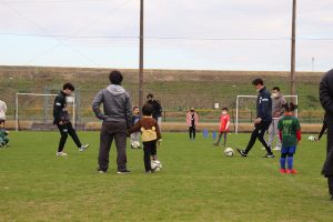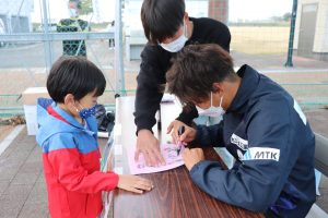 最後に「ゲーム」を行いました。プロサッカー選手のドリブルやパス、シュートテクニックを間近で感じる機会となりました。