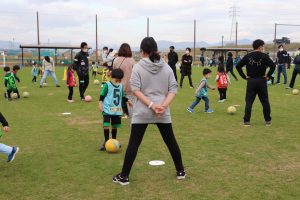 サッカー教室は「親子でサッカーを楽しむ」をテーマに、親子で協力しながら出来るメニューを中心に楽しく行いました。