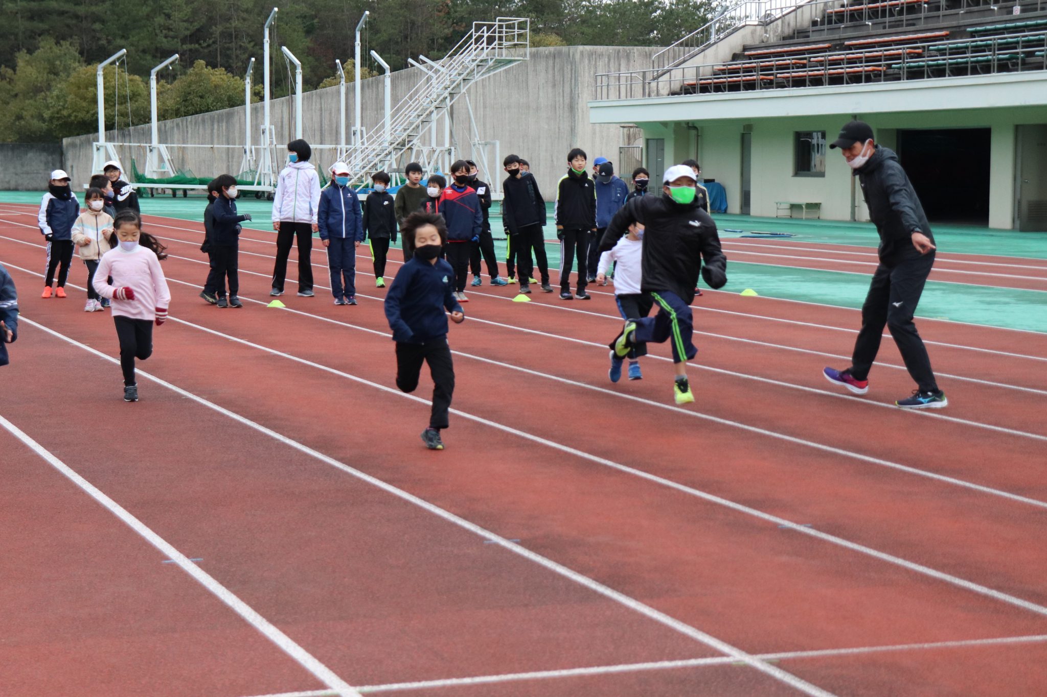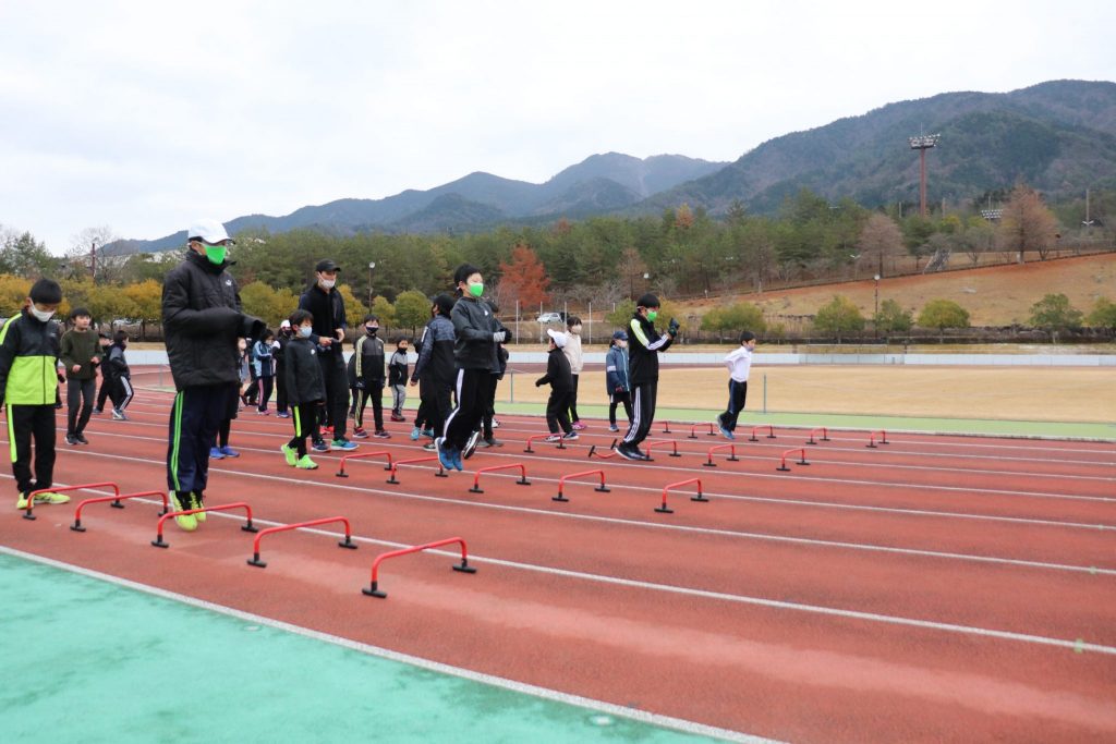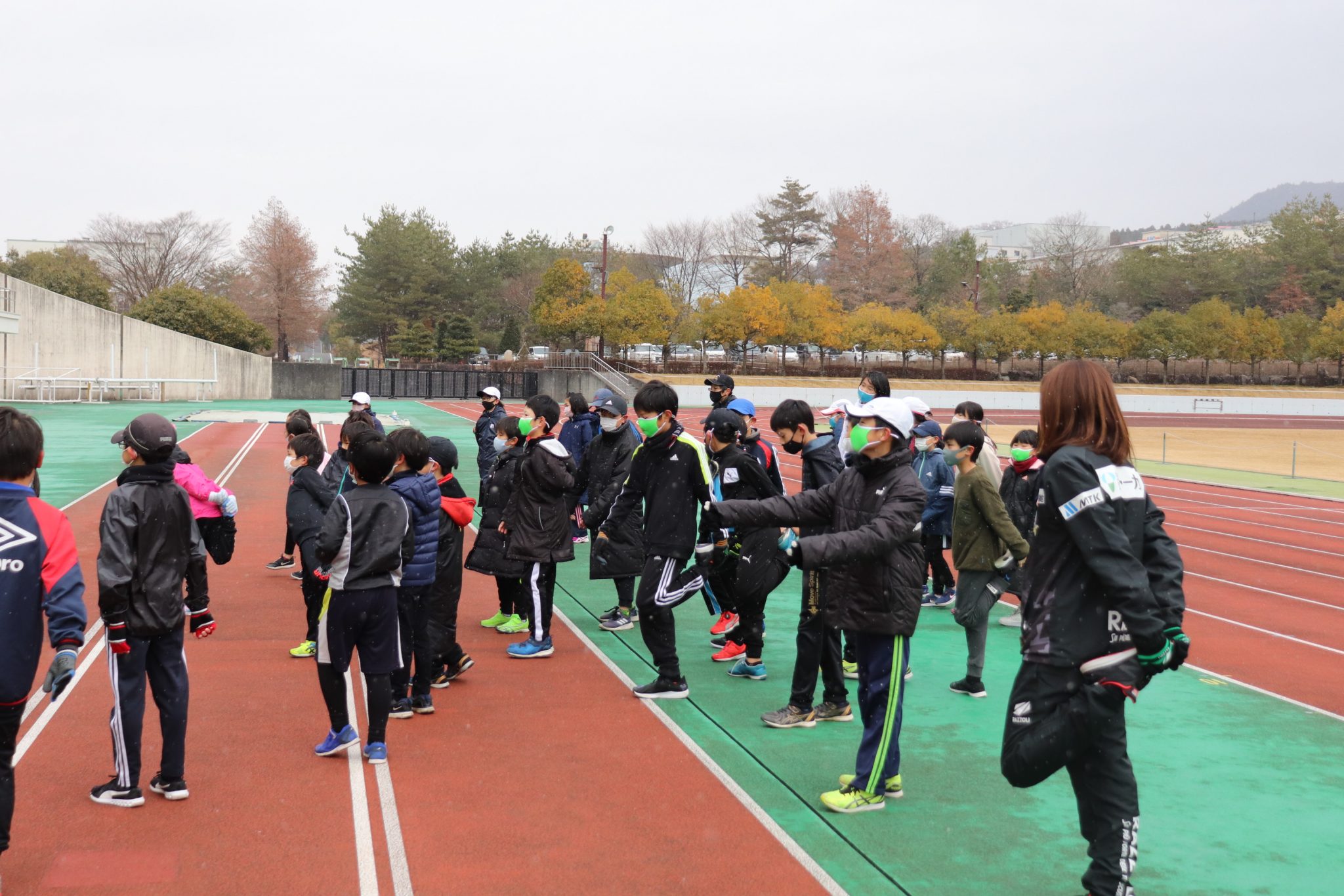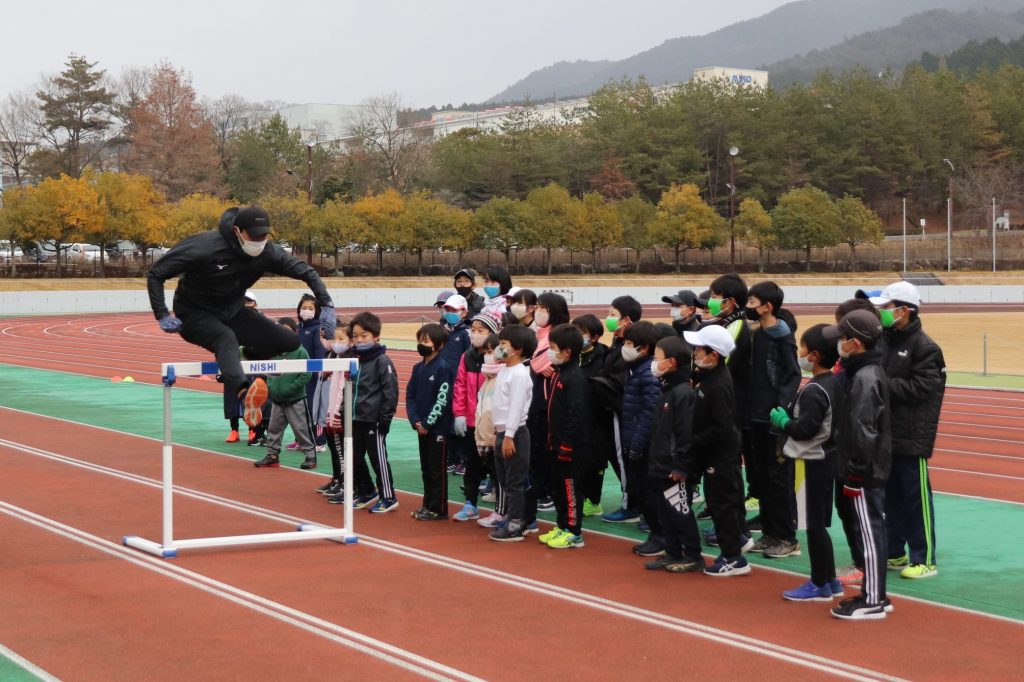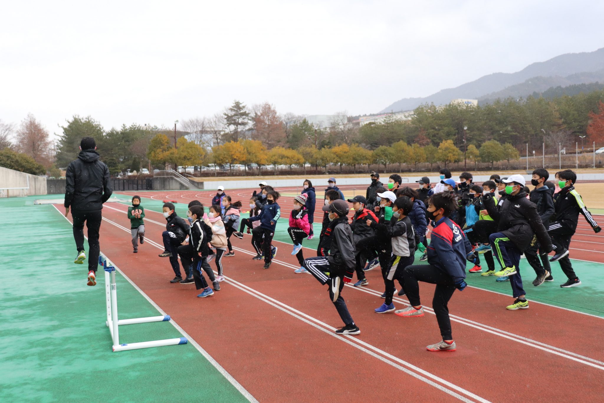 12月19日(日)に、中津川市にある中津川公園陸上競技場にて、和戸 達哉 選手(陸上:紀の国わかやま国体110mハードル1位)をお迎えし、FC岐阜かけっこ教室を開催しました。恵那市出身で中津川ジュニア陸上クラブに所属していた和戸選手は地元での開催となりました。