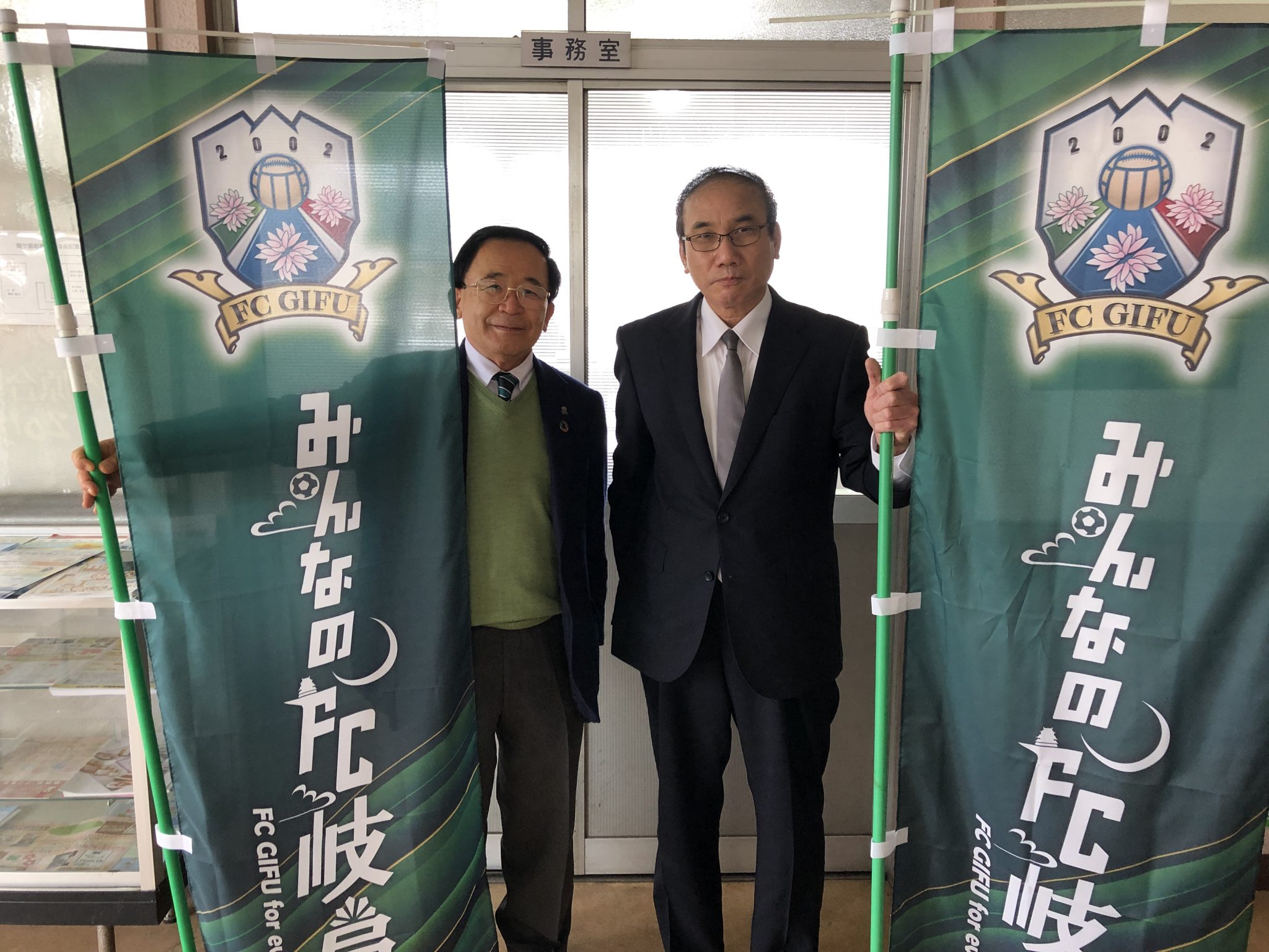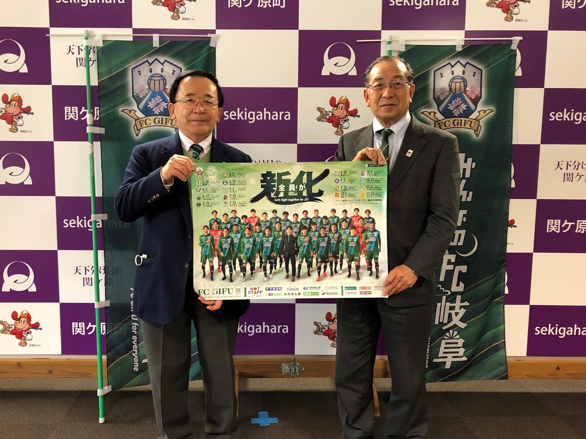 3月19日(土)ホーム開幕戦となる愛媛FC戦の「関ケ原町ホームタウンデー」開催にあたり、2月25日(金)関ケ原町役場にて、宮田 博之 会長が、西脇 康世 関ケ原町長を表敬訪問させて頂きました。
