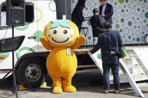 瑞穂市PRブースでは、市のPRと「かきりんグッズ」なども販売され、イベント来場者には「柿パスタ」がプレゼントされました。