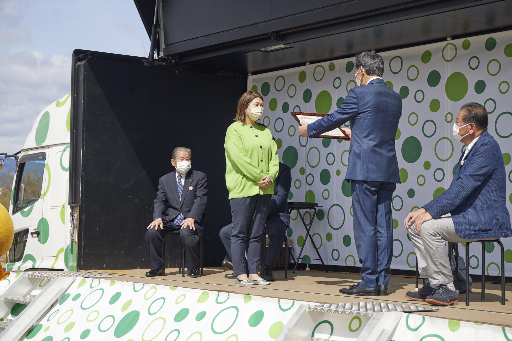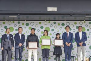 10時半からステージにて、応募総数95点の中から選ばれた、瑞穂市SDGsオリジナルロゴマークの最優秀賞、優秀賞の表彰式が行われました。