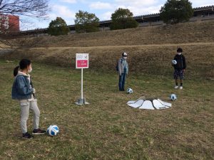 フットゴルフクラブの高波瀬選手、都築選手、片岡選手も一緒に参加し、ルールの説明をしたり、競技を楽しんだりしました。