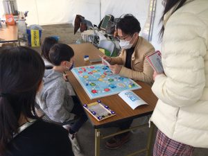 「みずいろ食堂あおぞら教室(日本水機工株式会社×朝日大学)」では、みずいろ食堂のカレーライスの販売と大学生と一緒にSDGsスゴロクを使い、楽しみながら学ぶ機会となりました。