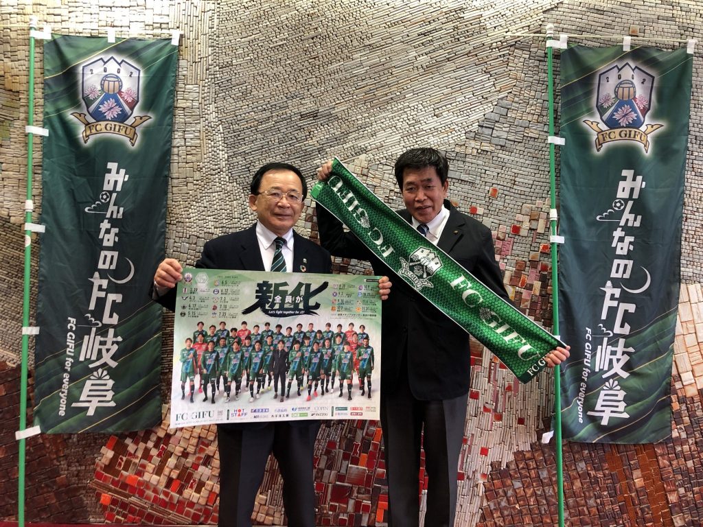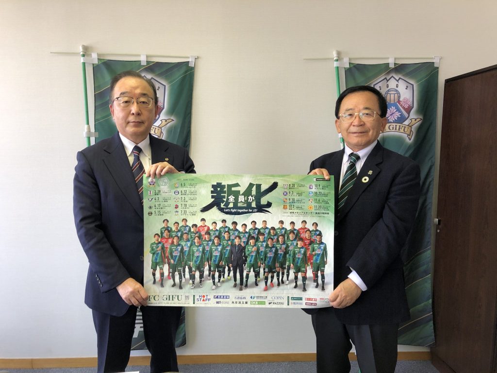 4月17日(日)J3リーグ第6節、ホームでの松本山雅FC戦の「多治見市ホームタウンデー」開催にあたり、3月28日(月)多治見市役所にて、宮田 博之 会長が、古川 雅典 多治見市長を表敬訪問させて頂きました。