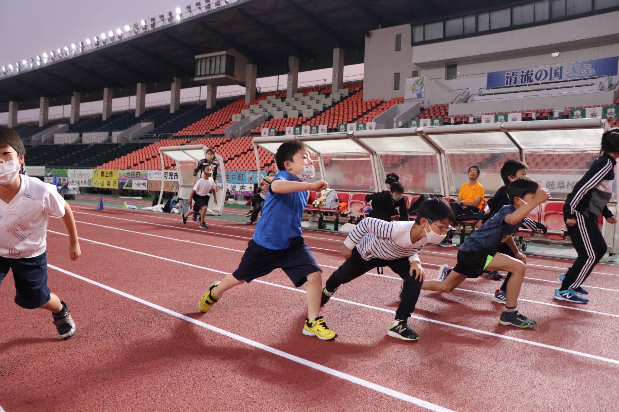 5月17日(火)岐阜メモリアルセンター長良川競技場にて、岐阜県スポーツ協会様主催の「気分RUNRUN♪ 長良川競技場で楽しまNight!」FC岐阜キッズかけっこ教室が開催されました。