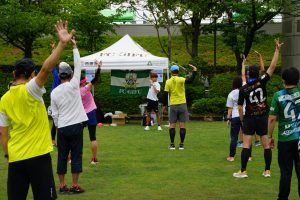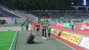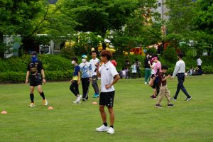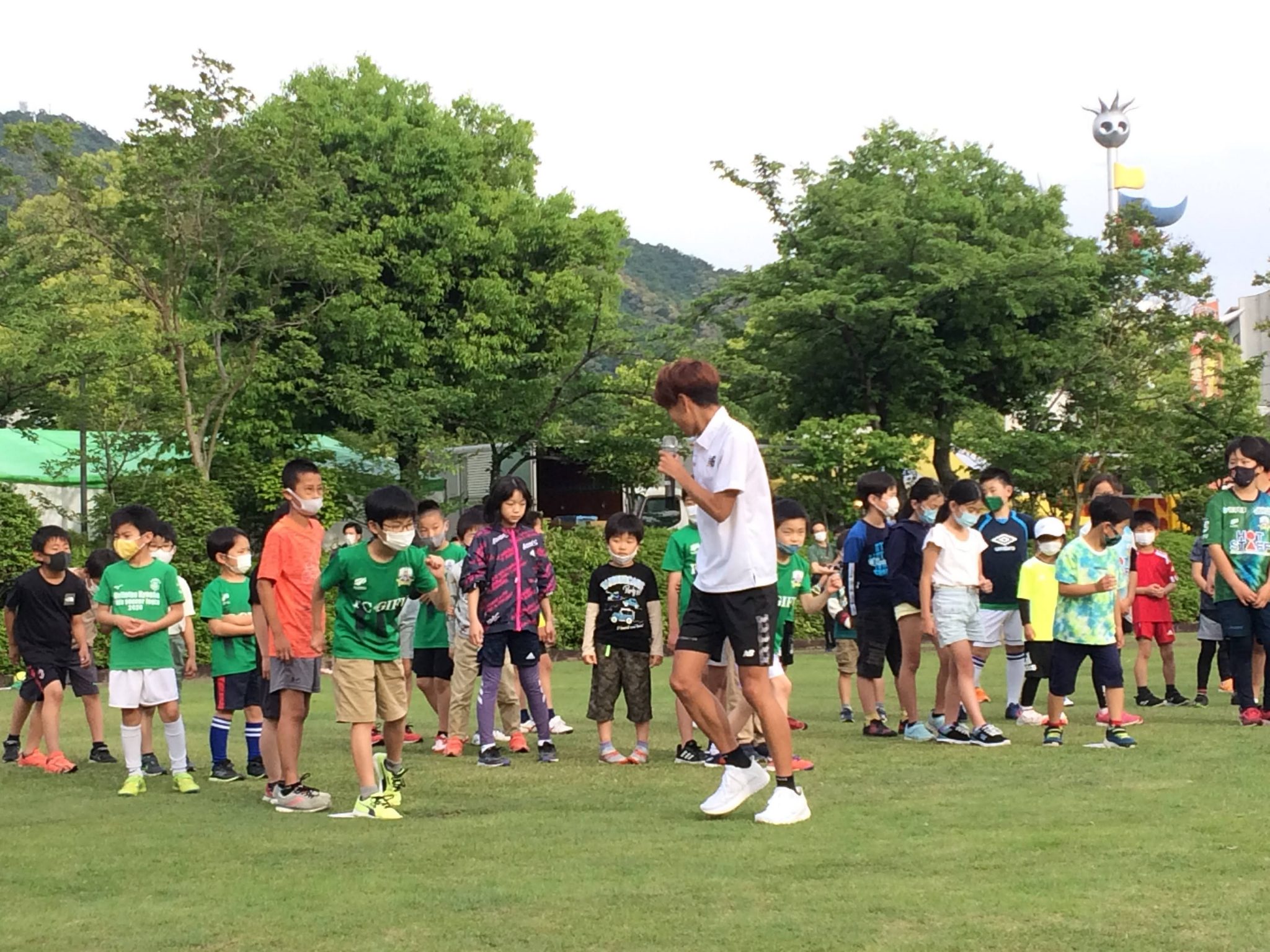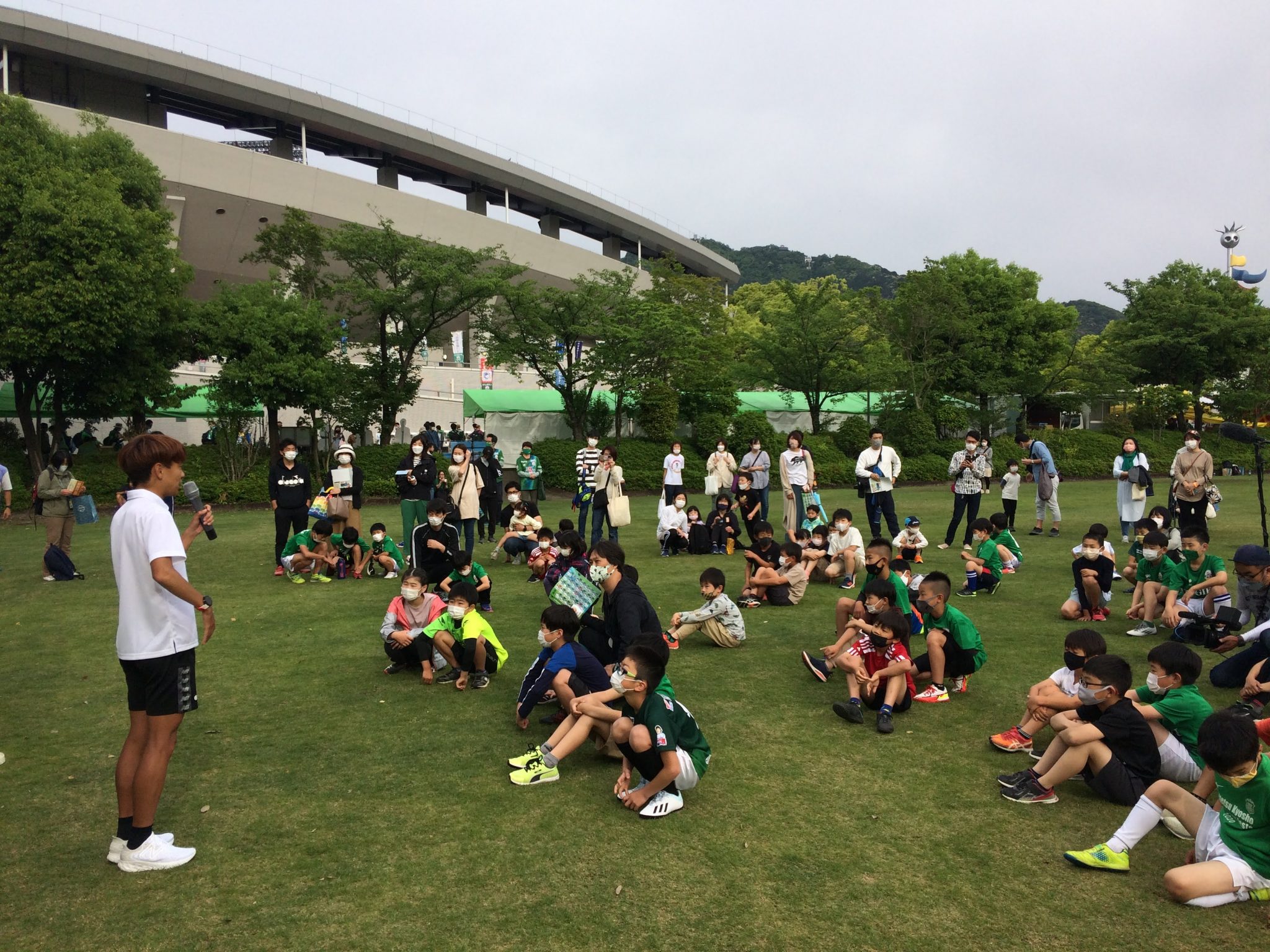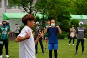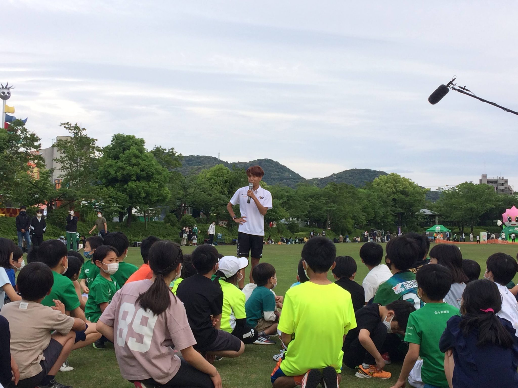5月15日(日)SC相模原戦にて、プロランナー神野大地選手によるランニングイベント(クリニック&教室)が芝生広場で開催されました。神野大地選手は、青山学院大学3年次に箱根駅伝5区で驚異的な区間新記録を樹立し、チームを初優勝に導いたことで注目を浴び「山の神」と言われ、大学4年次には箱根駅伝2連覇を達成している現役のトップアスリートです。