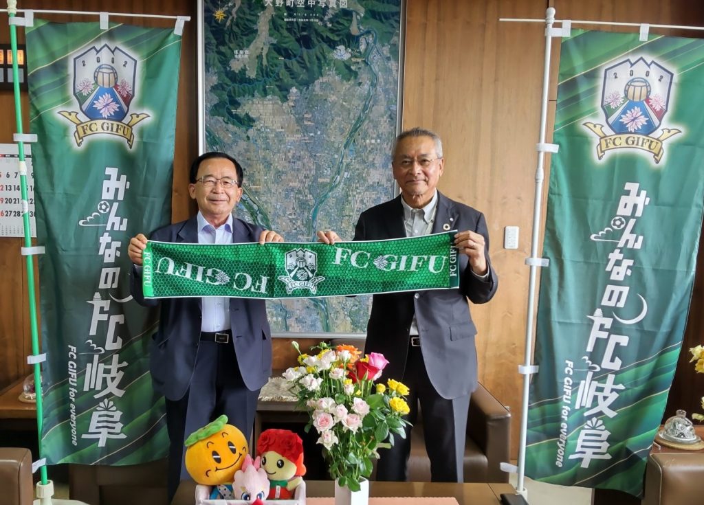 また、大野町の方500名様が無料で観戦できる「感動を共にチケット」のご案内もさせていただき、ぜひ多くの方にスタジアムにご来場いただきまして、選手に応援をいただけますよう、宇佐美町長にお願い申し上げました。