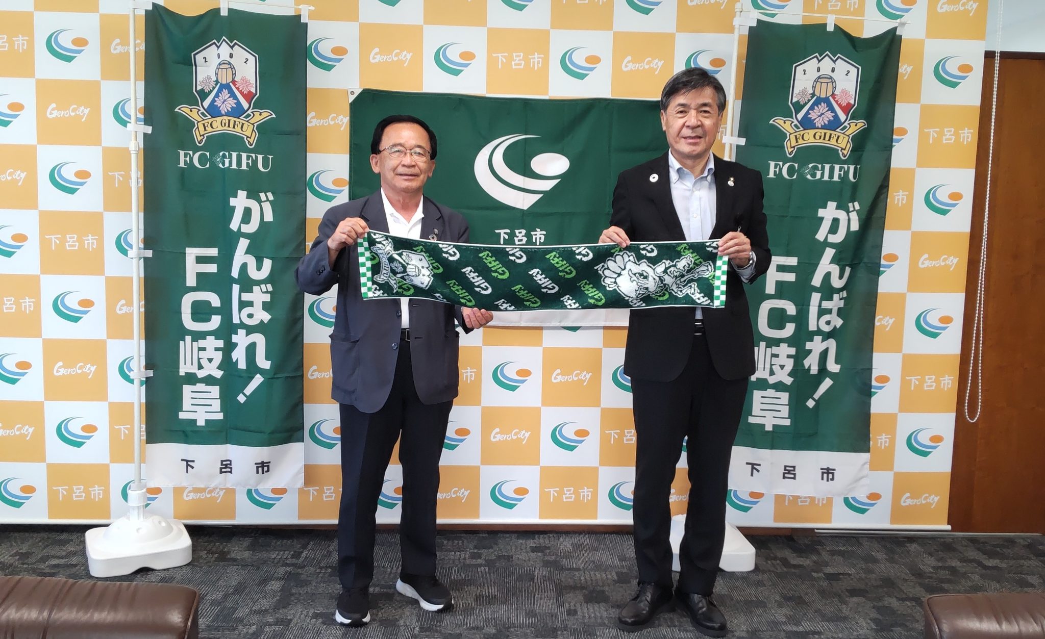 8月20日(土)のJ3リーグ第21節、ホームでの藤枝MYFC戦の「下呂市ホームタウンデー」開催にあたり、6月29日(水)下呂市役所にて、宮田 博之 会長が、山内 登 下呂市長を表敬訪問させて頂きました。
