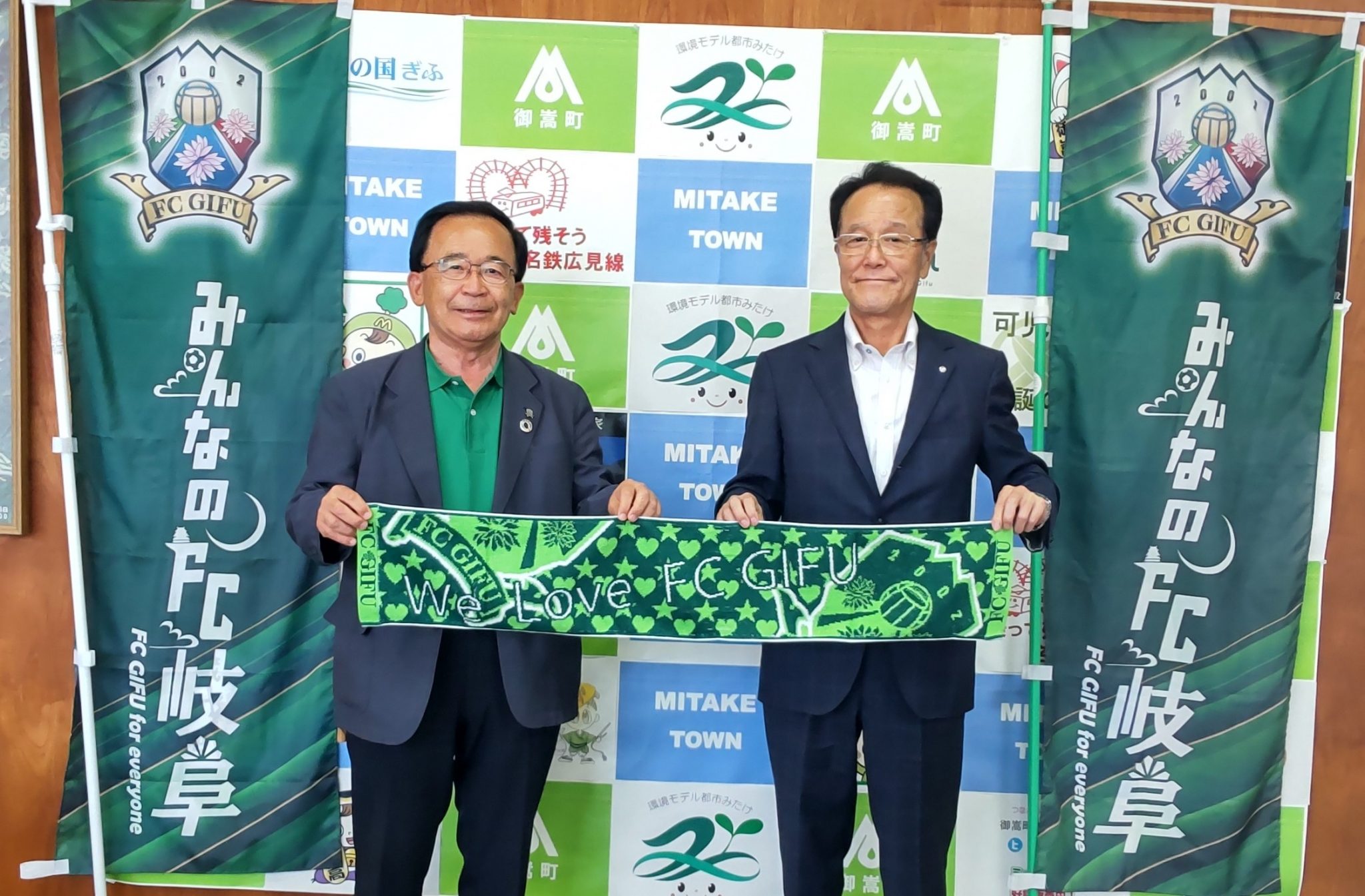 8月20日(土)のJ3リーグ第21節、ホームでの藤枝MYFC戦の「御嵩町ホームタウンデー」開催にあたり、7月1日(金)御嵩町役場にて、宮田 博之 会長が、渡邊 公夫 御嵩町長を表敬訪問させて頂きました。