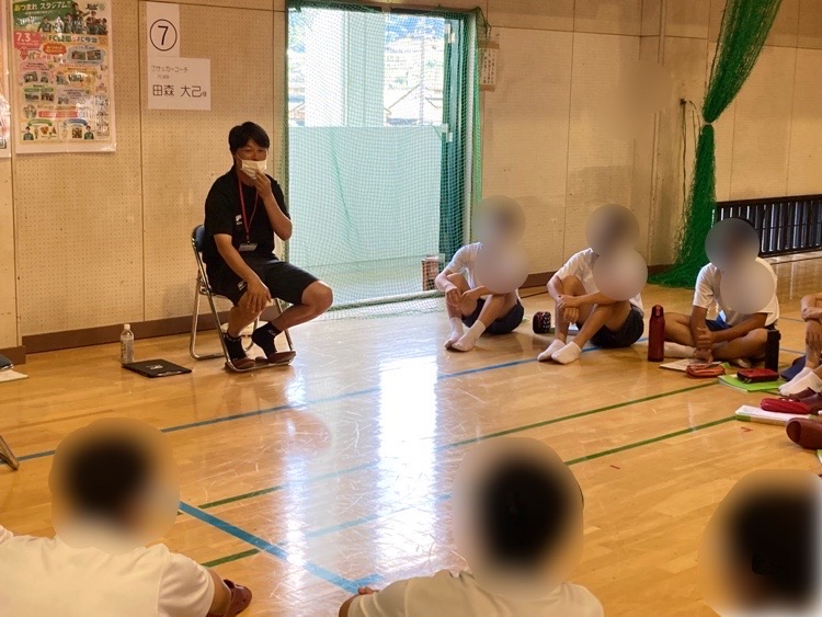 FC岐阜からは田森コーチが招待を受け、子ども達の前で講話をすることになりました。