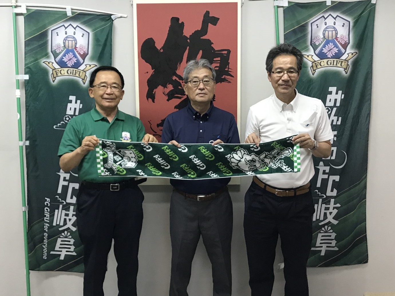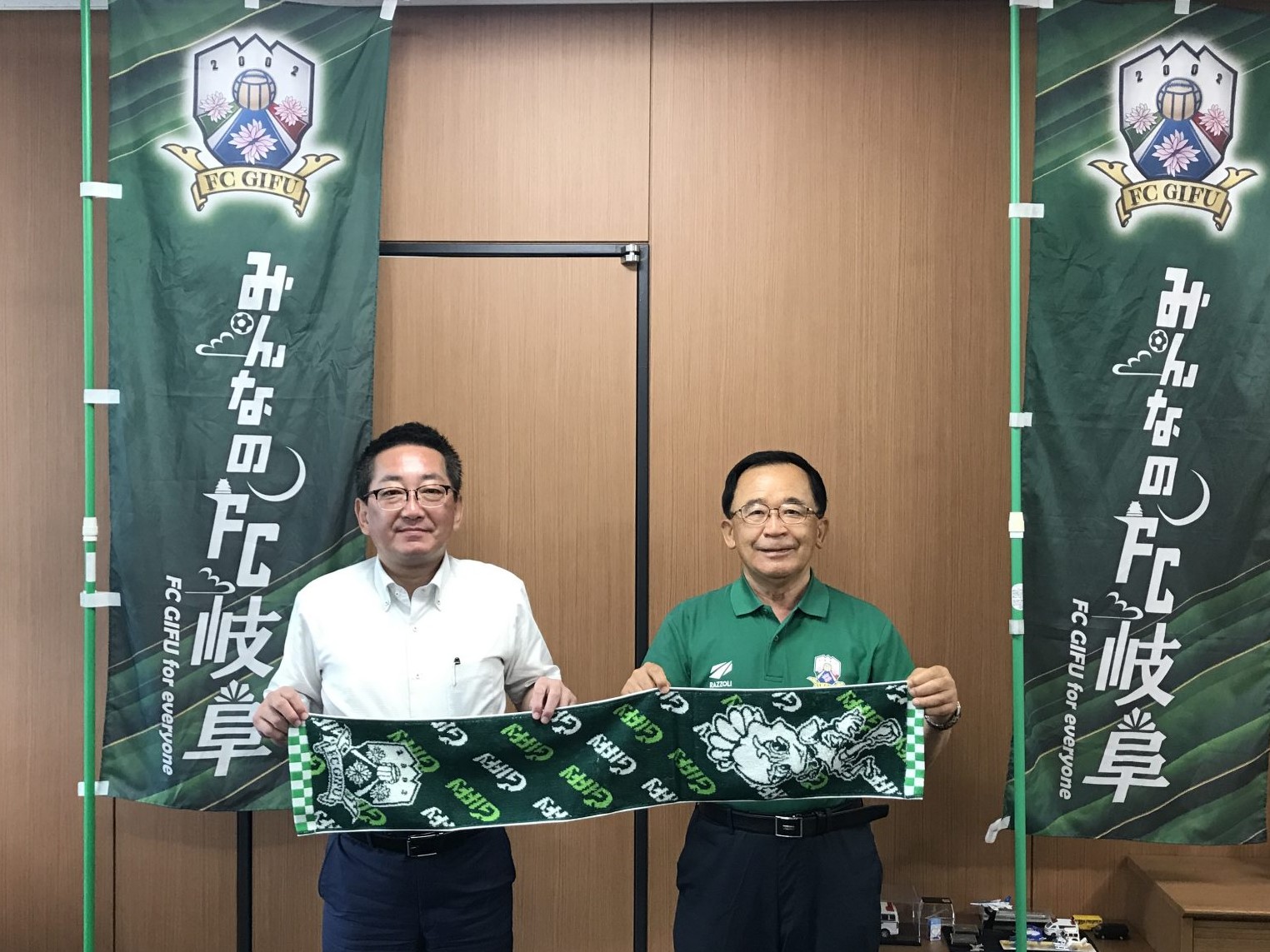 9月10日(土)のJ3リーグ第24節、ホームでのAC長野パルセイロ戦の「各務原市ホームタウンデー」開催にあたり、7月19日(火)各務原市役所に宮田 博之 会長が浅野 健司 各務原市長を訪問させて頂きお礼やお願いを申し上げました。