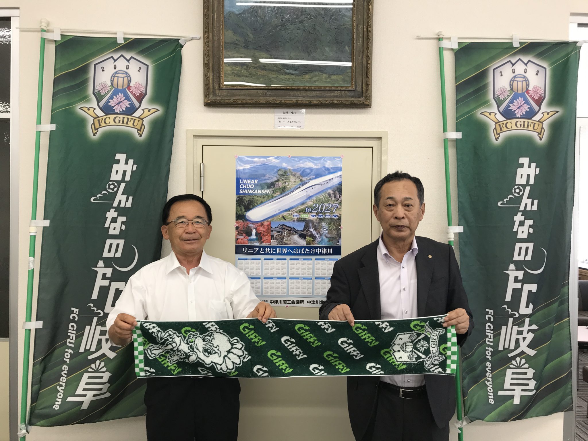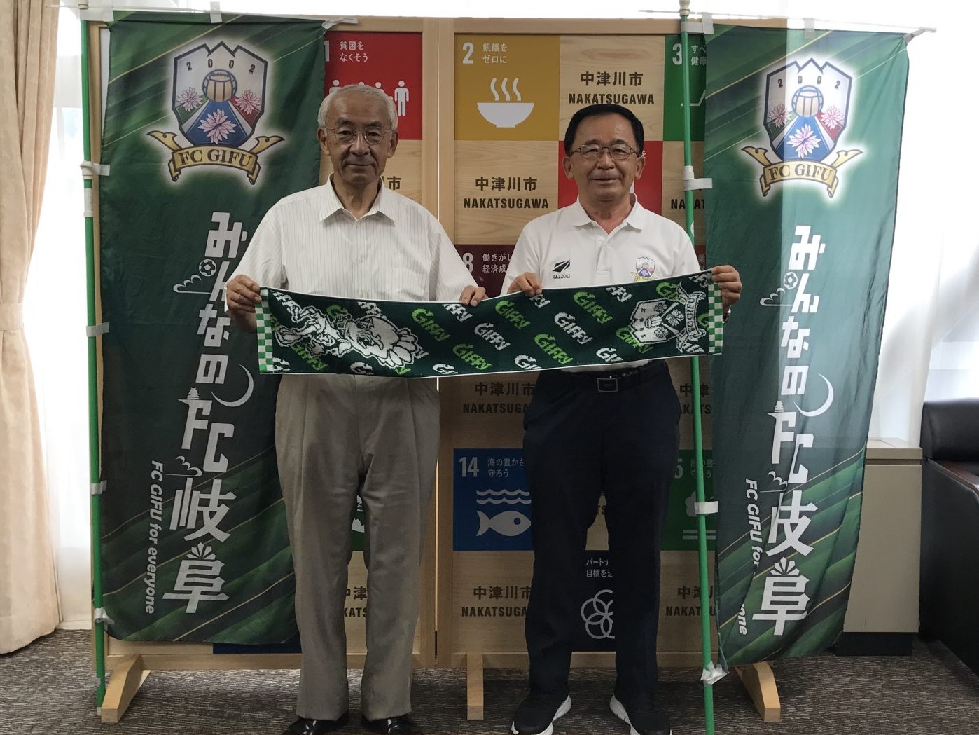 9月3日(土)のJ3リーグ第23節、ホームでのY.S.C.C.横浜戦の「中津川市ホームタウンデー」開催にあたり、7月27日(火)中津川市役所にて、宮田 博之 会長が、青山 節児 中津川市長を訪問させていただきお礼やお願いを申し上げました。