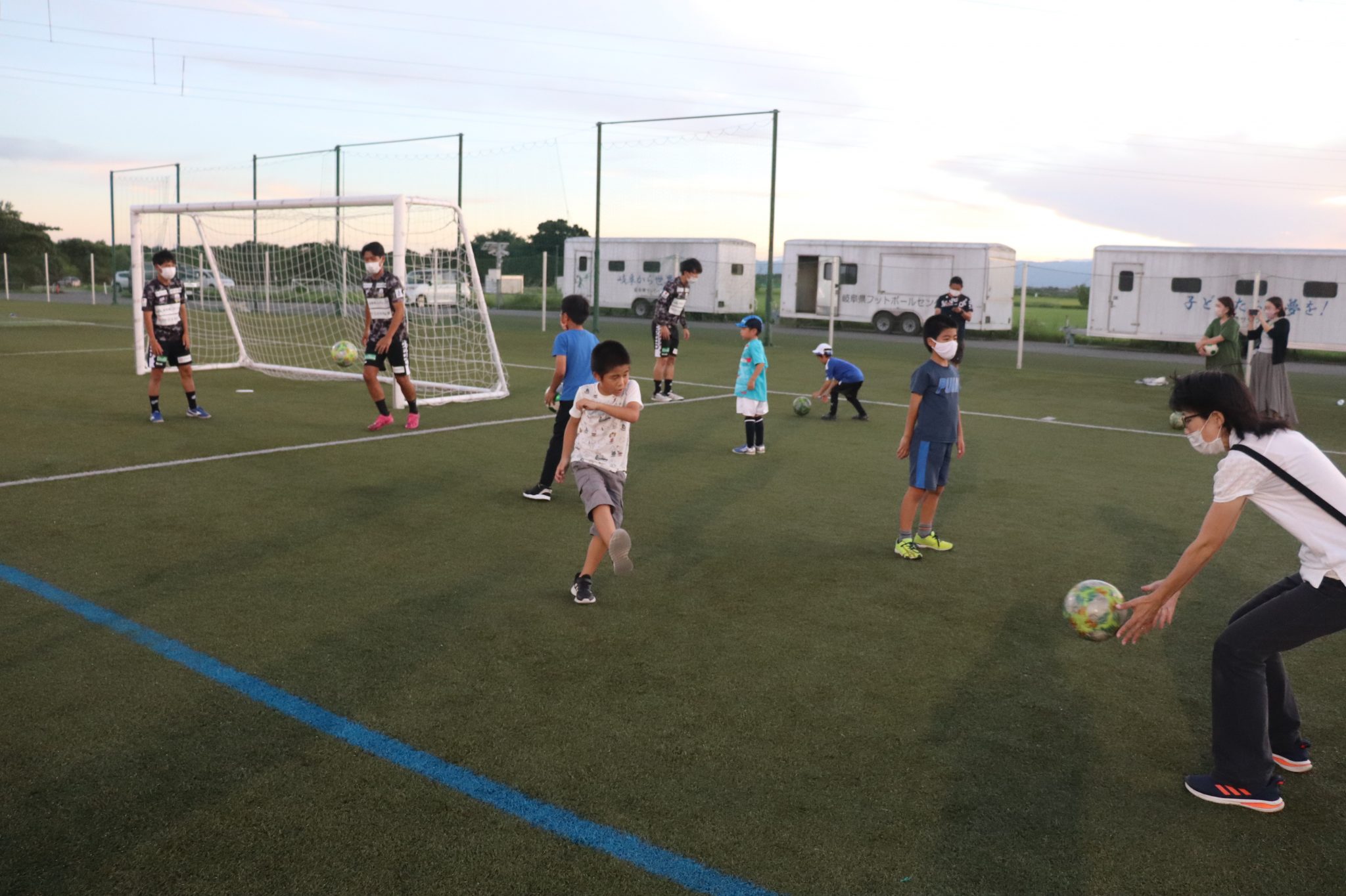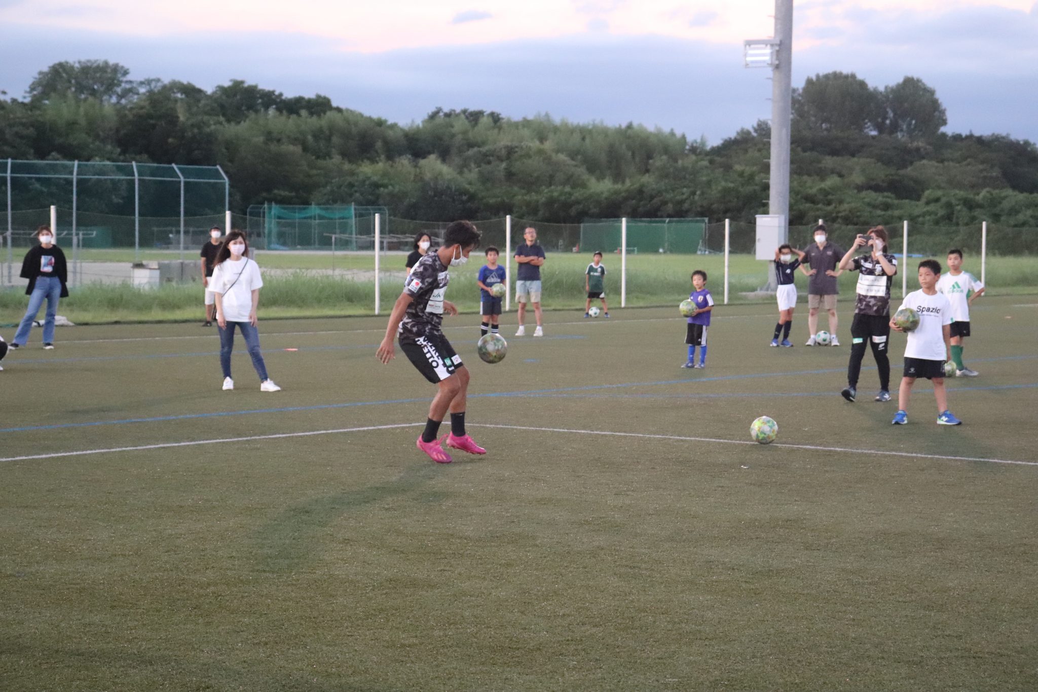 キックしたボールをトラップしてリフティングするという選手のデモンストレーションには、参加者の皆さんが驚いていました。