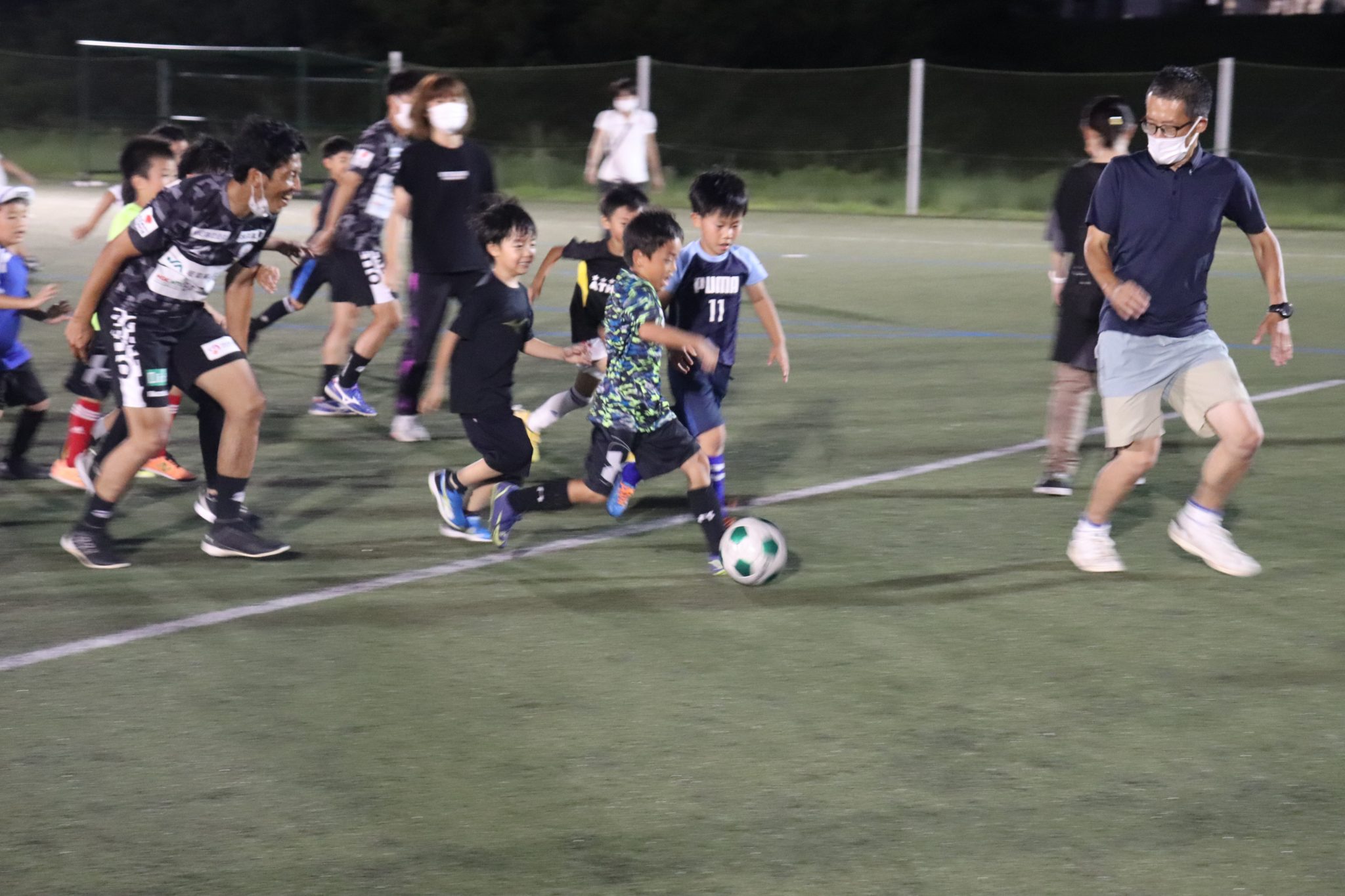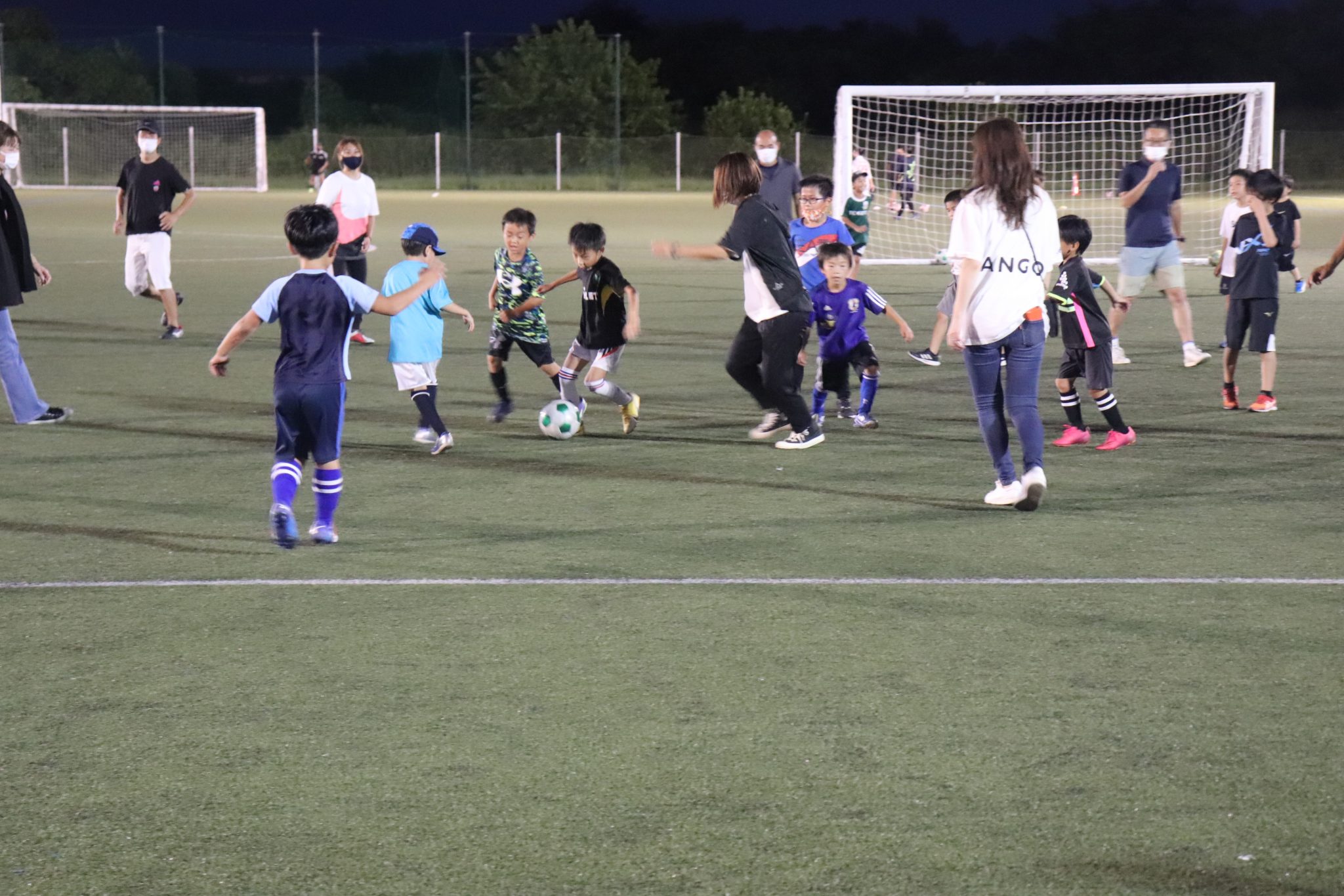 子どもチームvs大人チームで行い、子どもたちはお父さん、お母さんに勝つために必死にボールを追いかけ、ゴールを目指してプレーできていました。