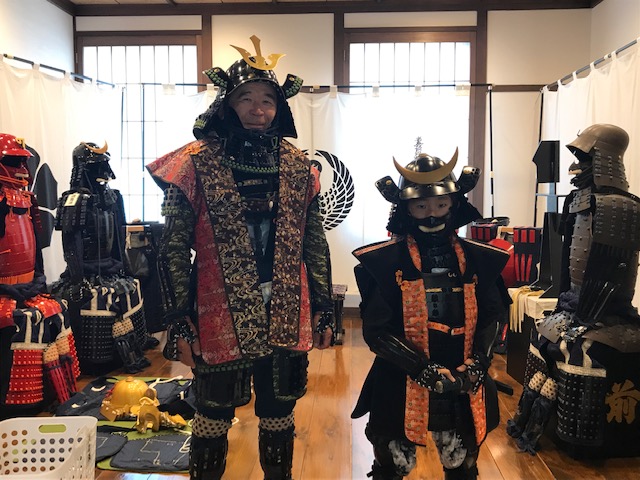 可児市観光交流館では「甲冑着付け体験」をさせていただきました。