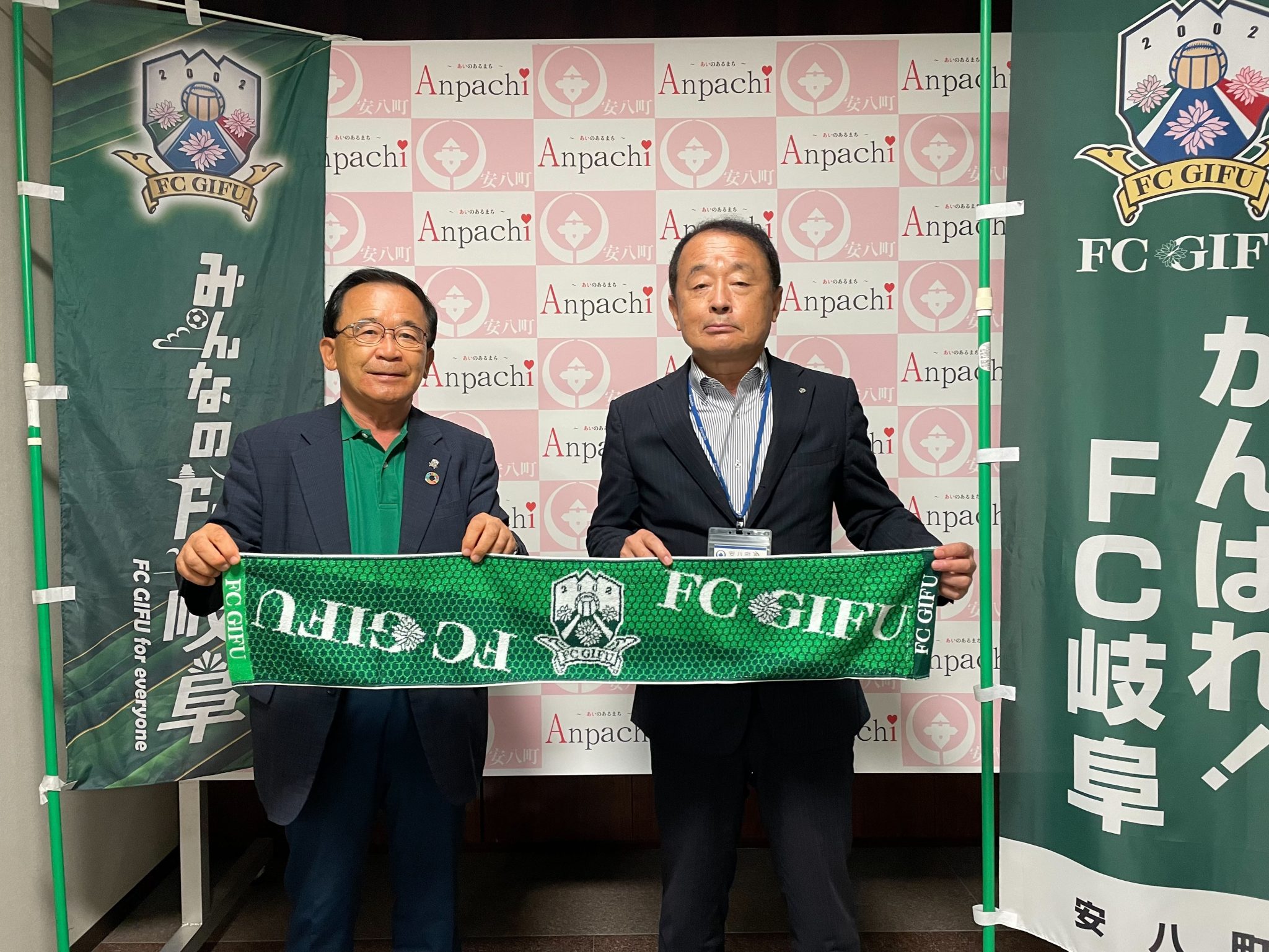 10月2日(日)のJ3リーグ第27節、ホームでの福島ユナイテッドFC戦の「安八町ホームタウンデー」開催にあたり、8月30日(火)安八町役場にて、宮田 博之 会長が、堀 正 安八町長を訪問させていただきお礼やお願いを申し上げました。