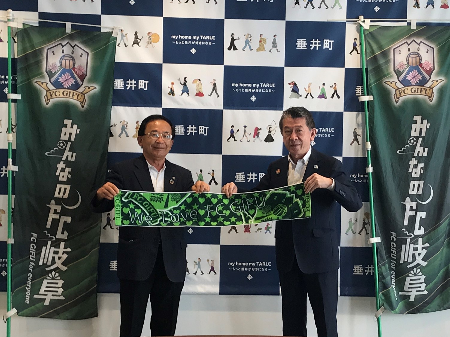 11月6日(日)のJ3リーグ第32節、ホームでのテゲバジャーロ宮崎戦の「垂井町ホームタウンデー」開催にあたり、10月4日(火)垂井町役場にて、宮田 博之 会長が、早野 博文 垂井町長を訪問させていただきました。