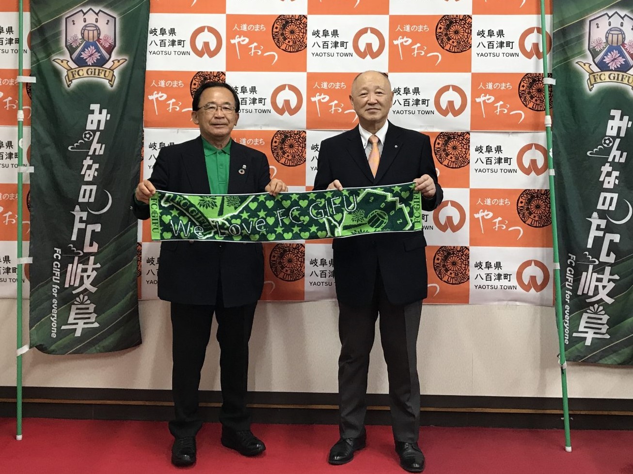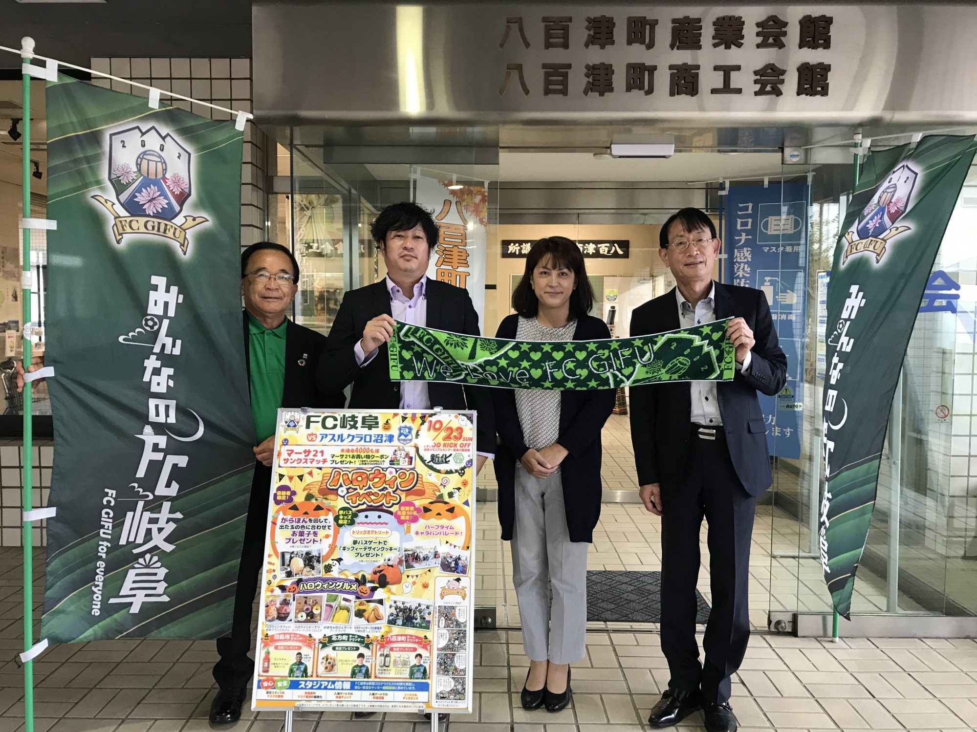 10月23日(日)のJ3リーグ第30節、ホームでのアスルクラロ沼津戦の「八百津町ホームタウンデー」開催にあたり、10月7日(金)八百津町役場にて、宮田 博之 会長が、金子 政則 町長を訪問させて頂きました。