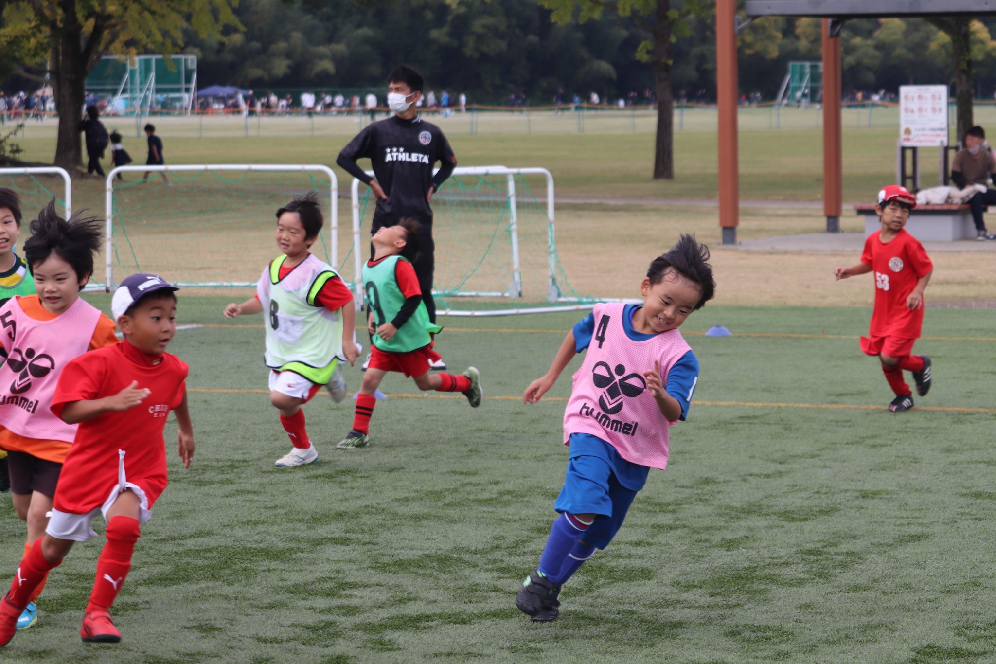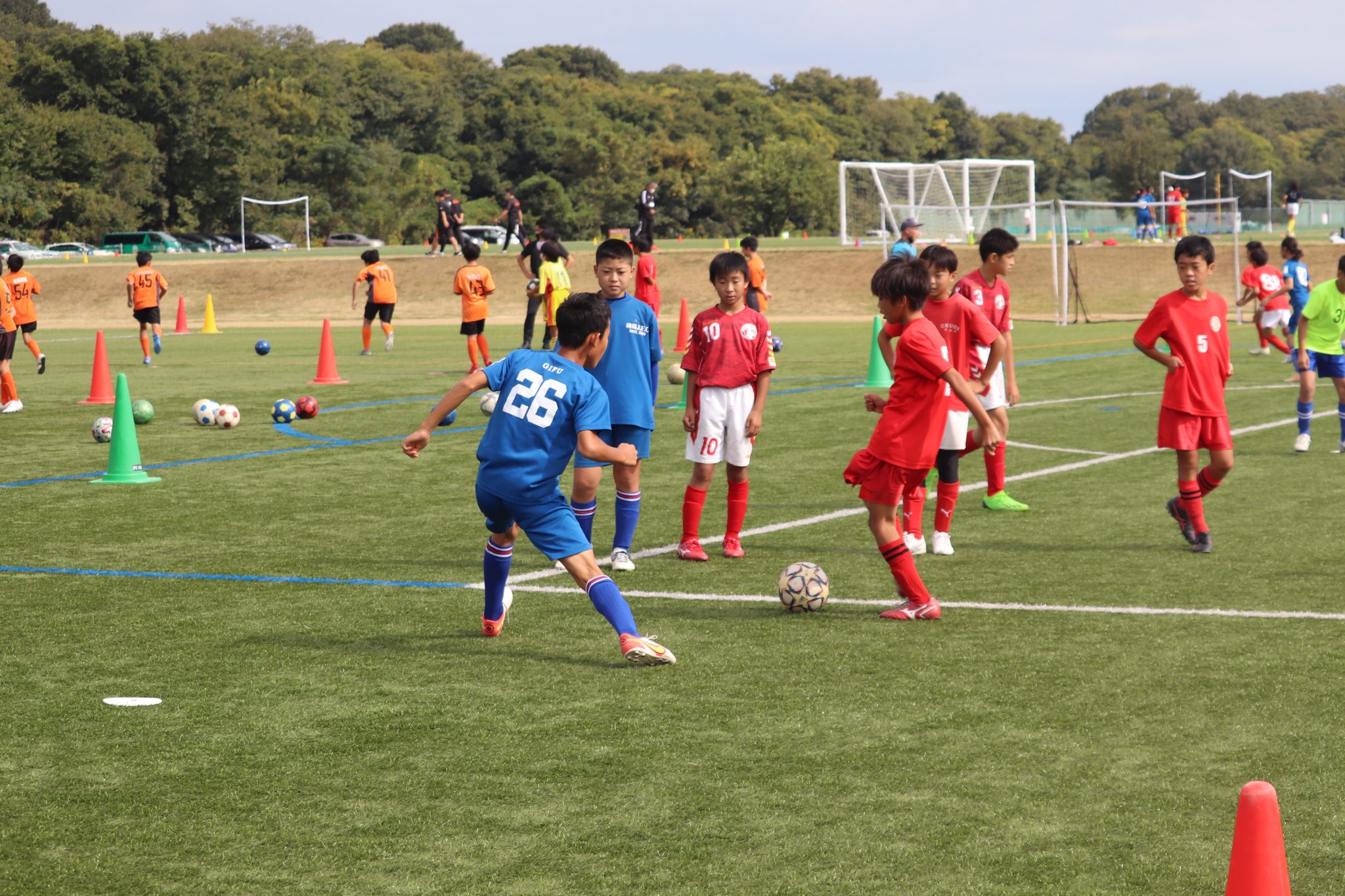 少年団所属の子供たちを対象としたサッカー教室なので、短時間でもレベルアップできるよう、また新しい学びがあるようにトレーニングをしました。