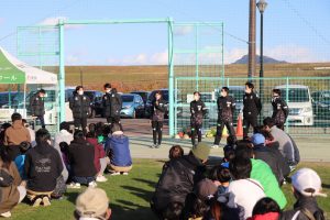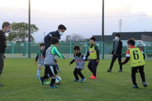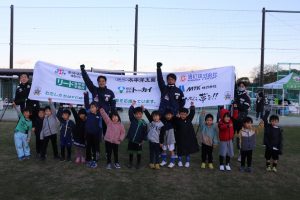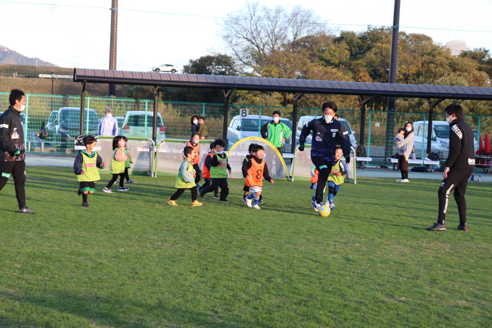 選手からパスをもらったり、選手のボールを取りにいったり、たくさんの笑みがこぼれ、元気いっぱい楽しくサッカーを行いました。