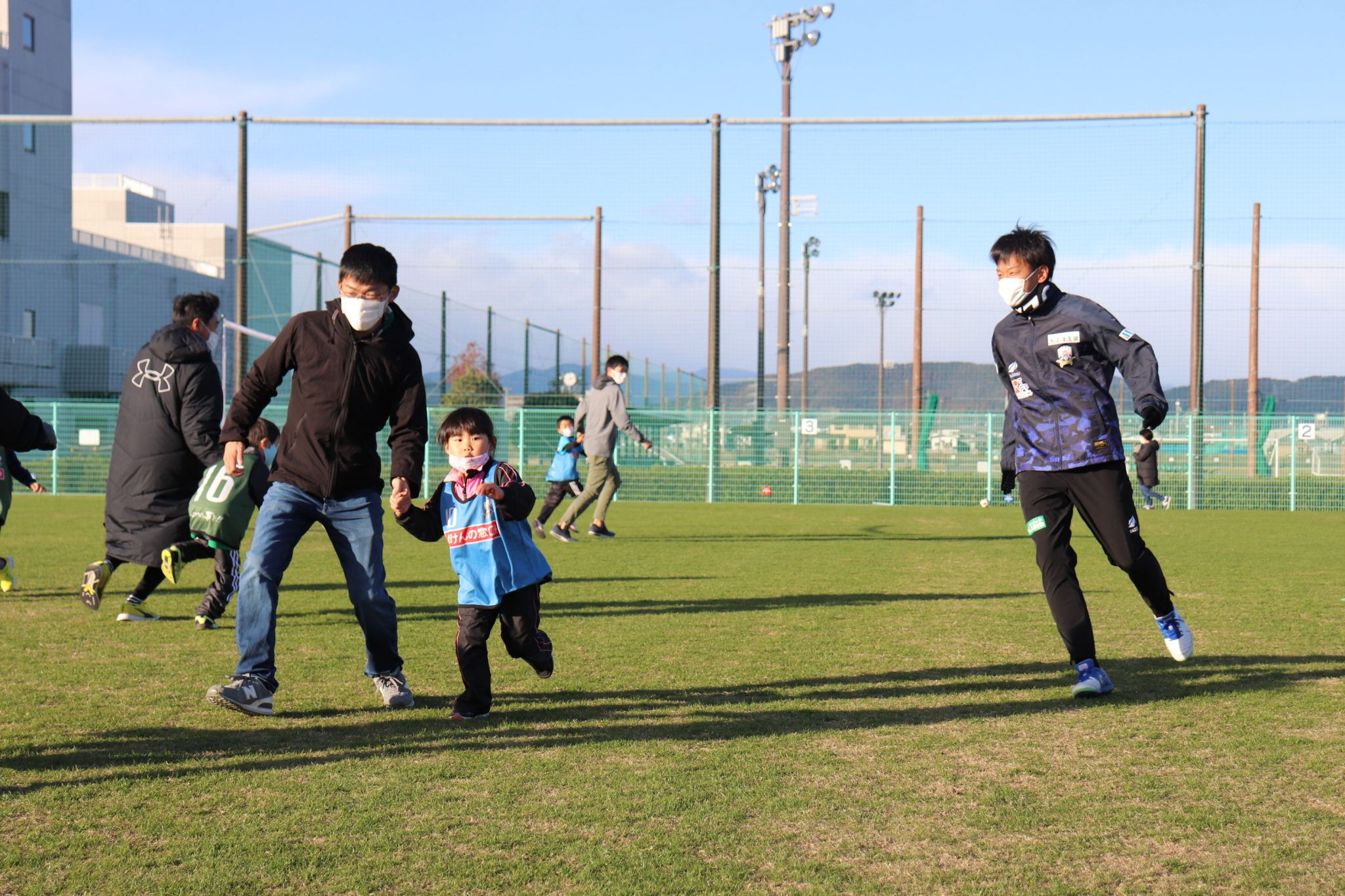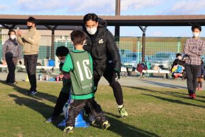 ミニゲームでは、親子で手をつないで助け合いながらゲームをしたり「親 vs 子ども」や「選手+コーチ vs 子ども」では特に白熱した戦いとなりました。