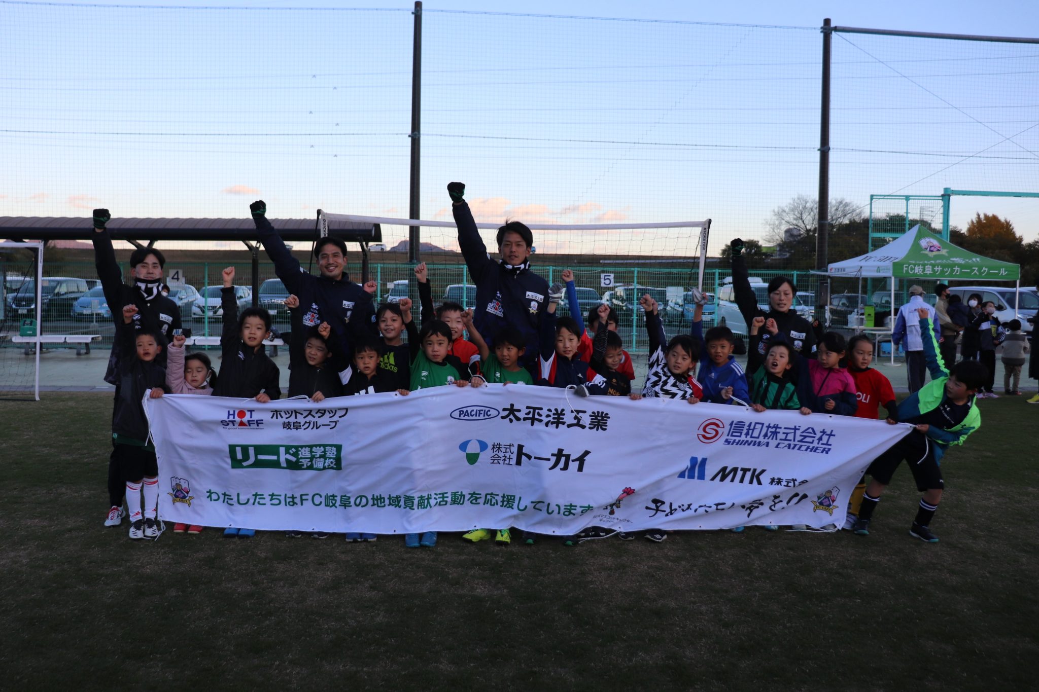 11月27日(土)岐阜市にある北西部運動公園にて、岐阜市主催の「岐阜市スポーツ交流センター親子サッカー教室in北西部」が開催されました。