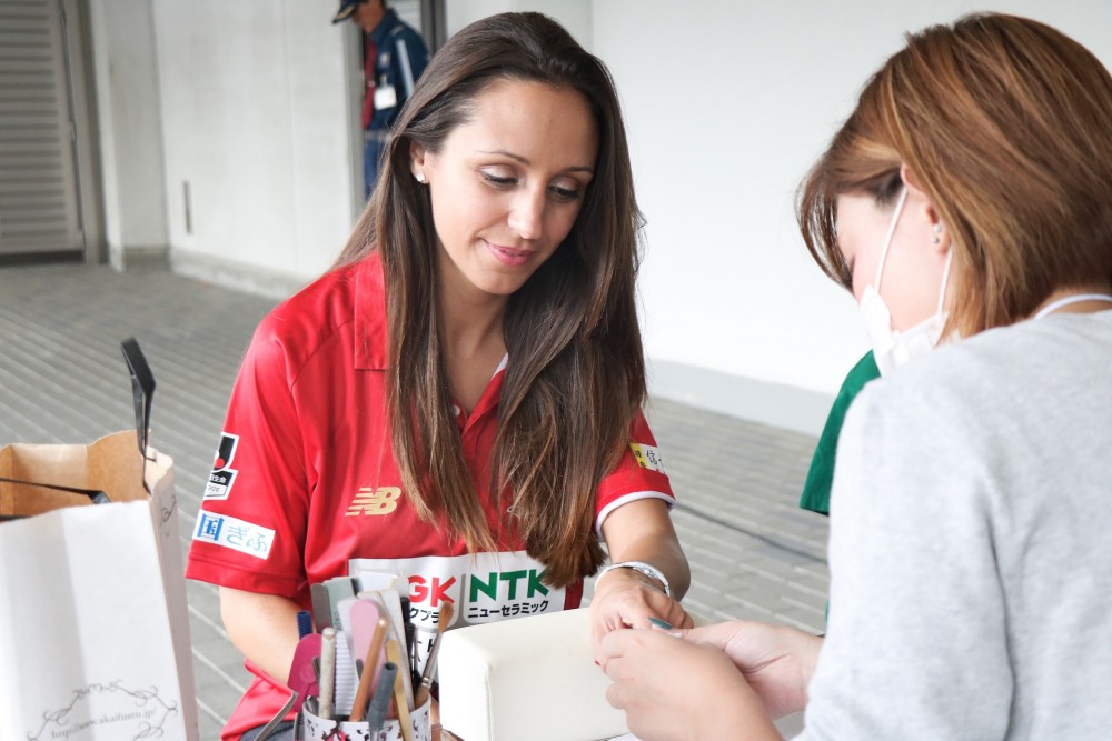 徳島戦ではガールズフェスを開催!スウィーツからビューティー、手作りのアクセサリーまでSNS映えするイベントがいっぱい!女の子から女性まで幅広い世代の多くのナガラジェンヌに楽しんでいただけました!シシーニョ選手のフィアンセであるカロリーナさんと、伊藤寧々さんにも各ブースを体験してもらいました♪