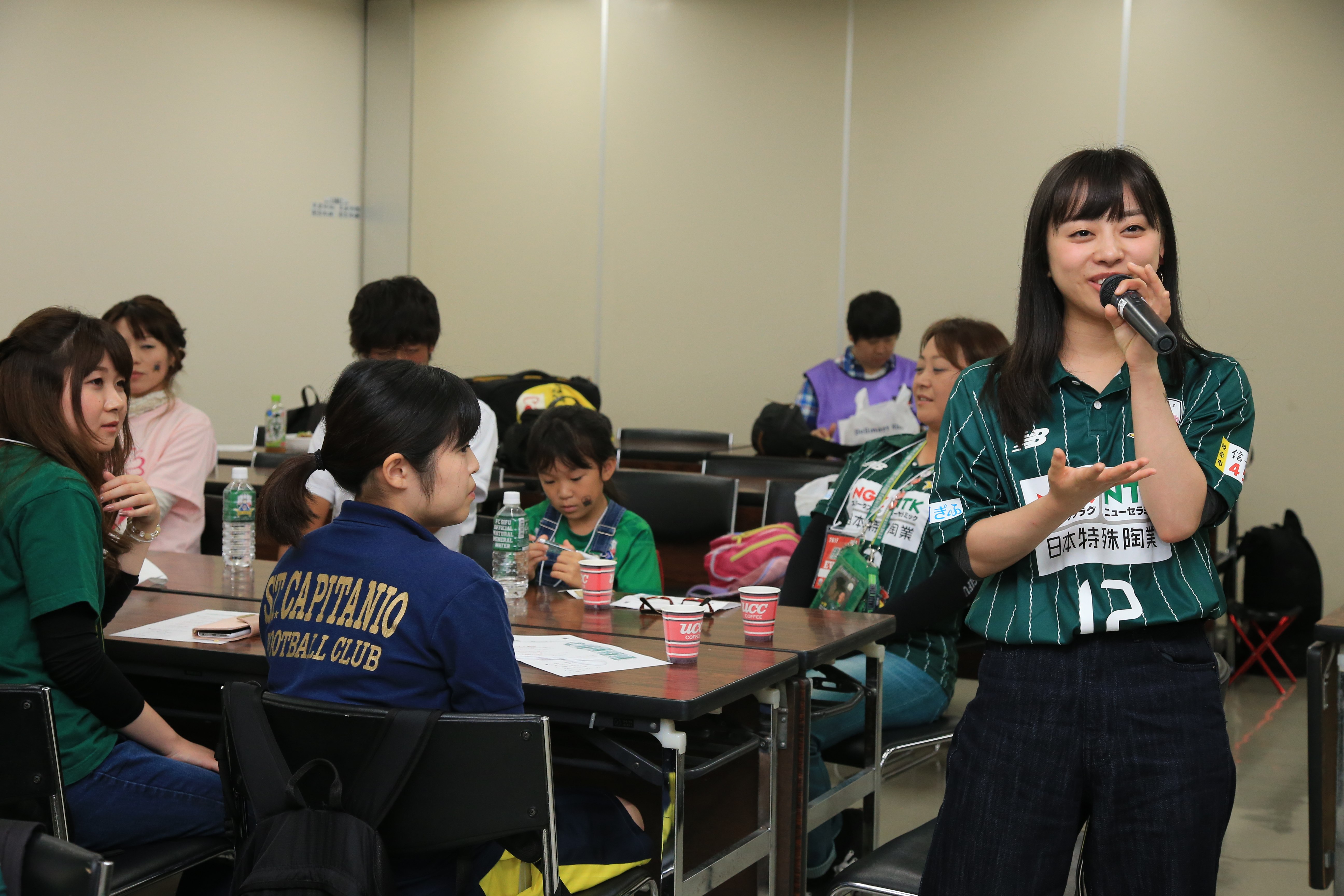 換。 ナガラジェンヌのFC岐阜に対する熱い想いに、選手も圧倒され気味・・・