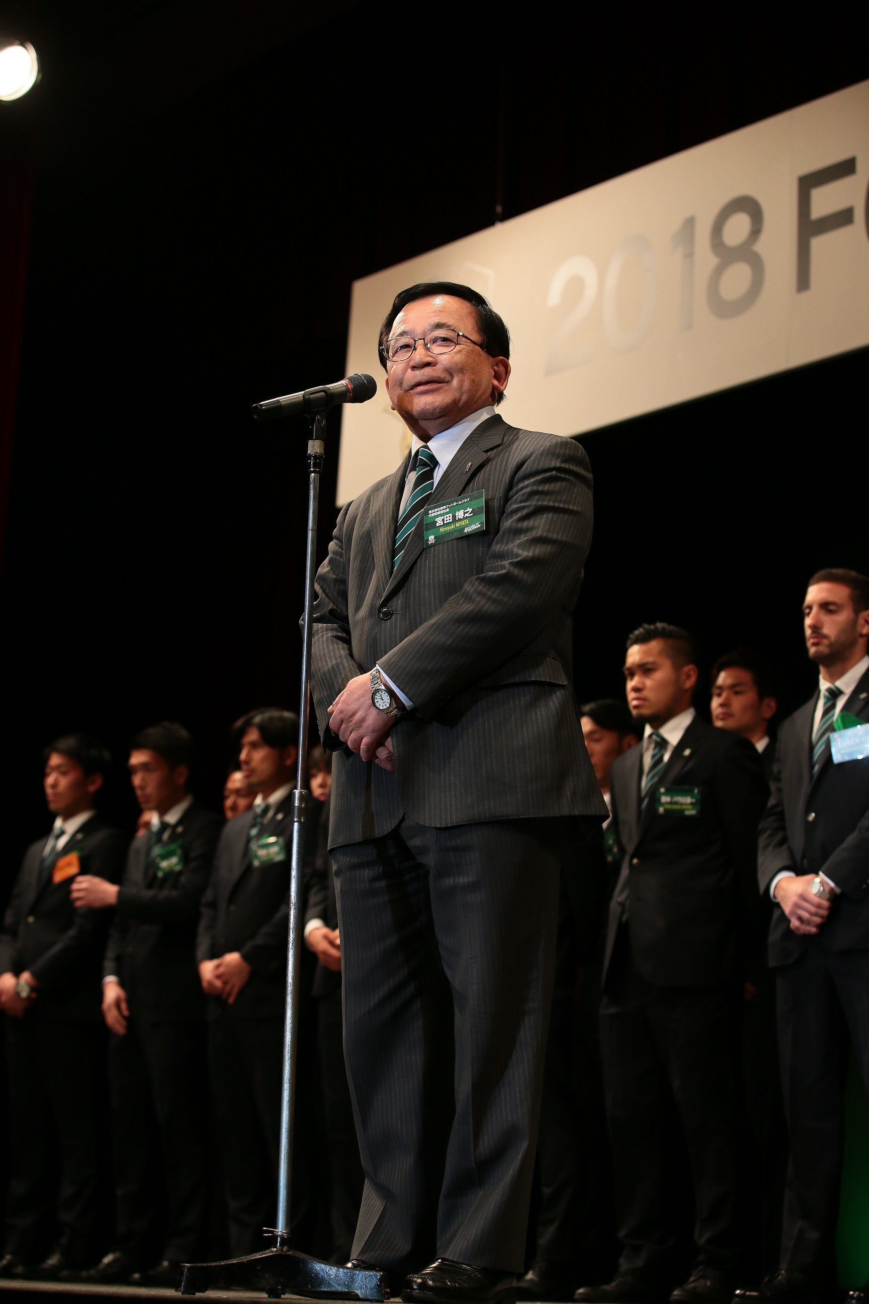 続いて、2018シーズンのユニフォームを着てご出席いただきました岐阜県知事 古田肇様よりご挨拶をいただきました。