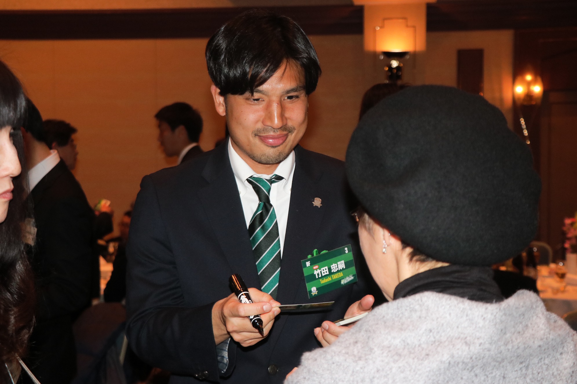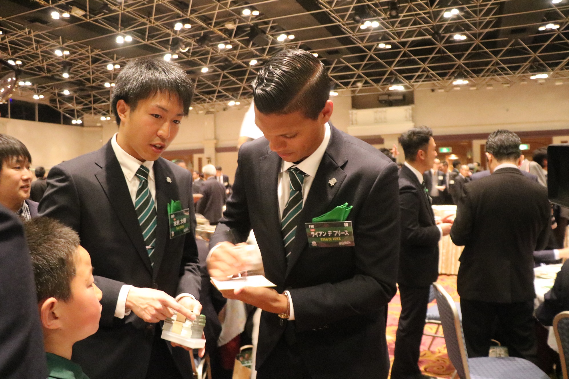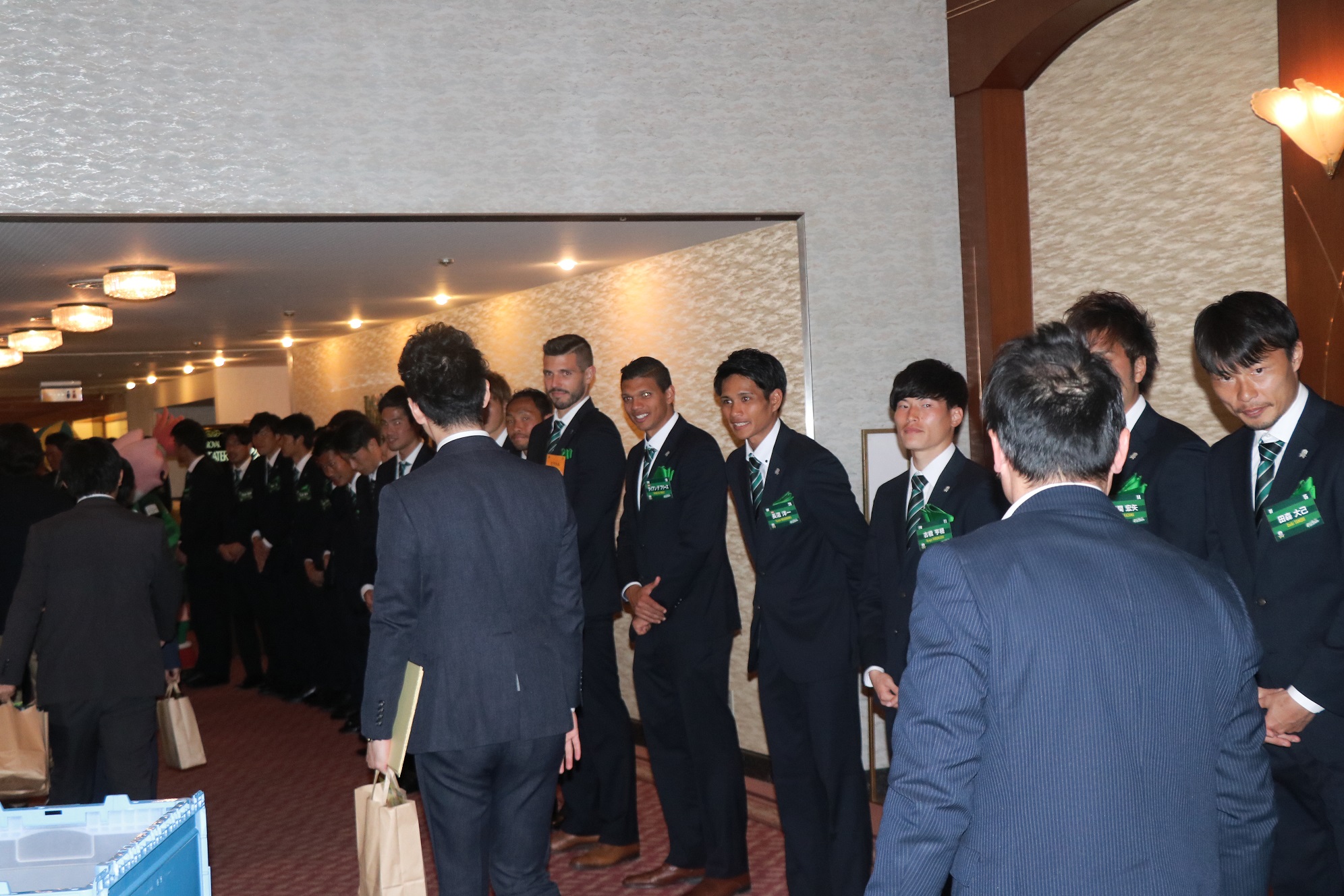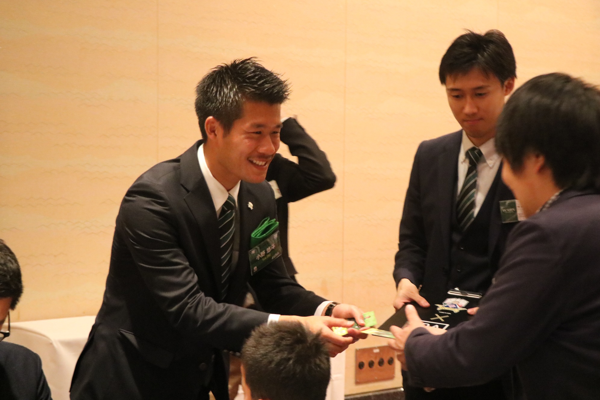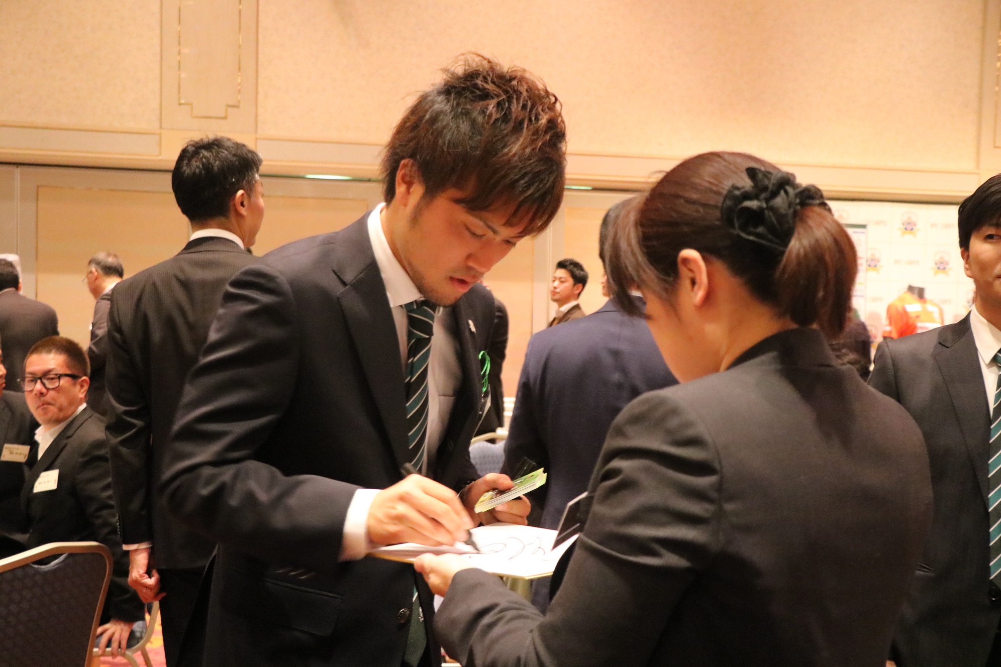 ?その後、選手がそれぞれの選手カードを手に、ご出席の皆さまにご挨拶させていただきました。ご出席いただきました皆様からは今シーズンへの期待と、温かいお言葉をかけていただきました。