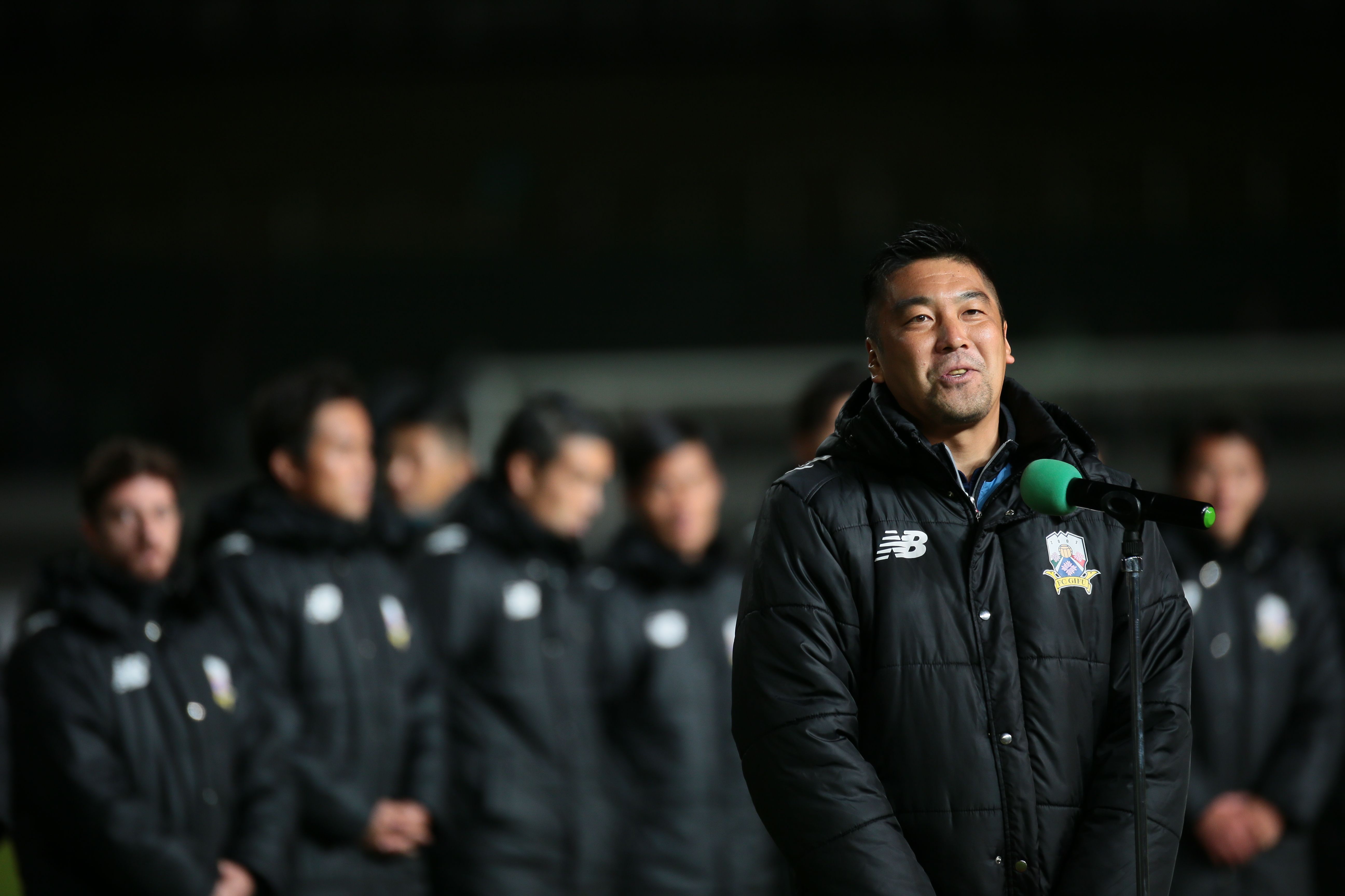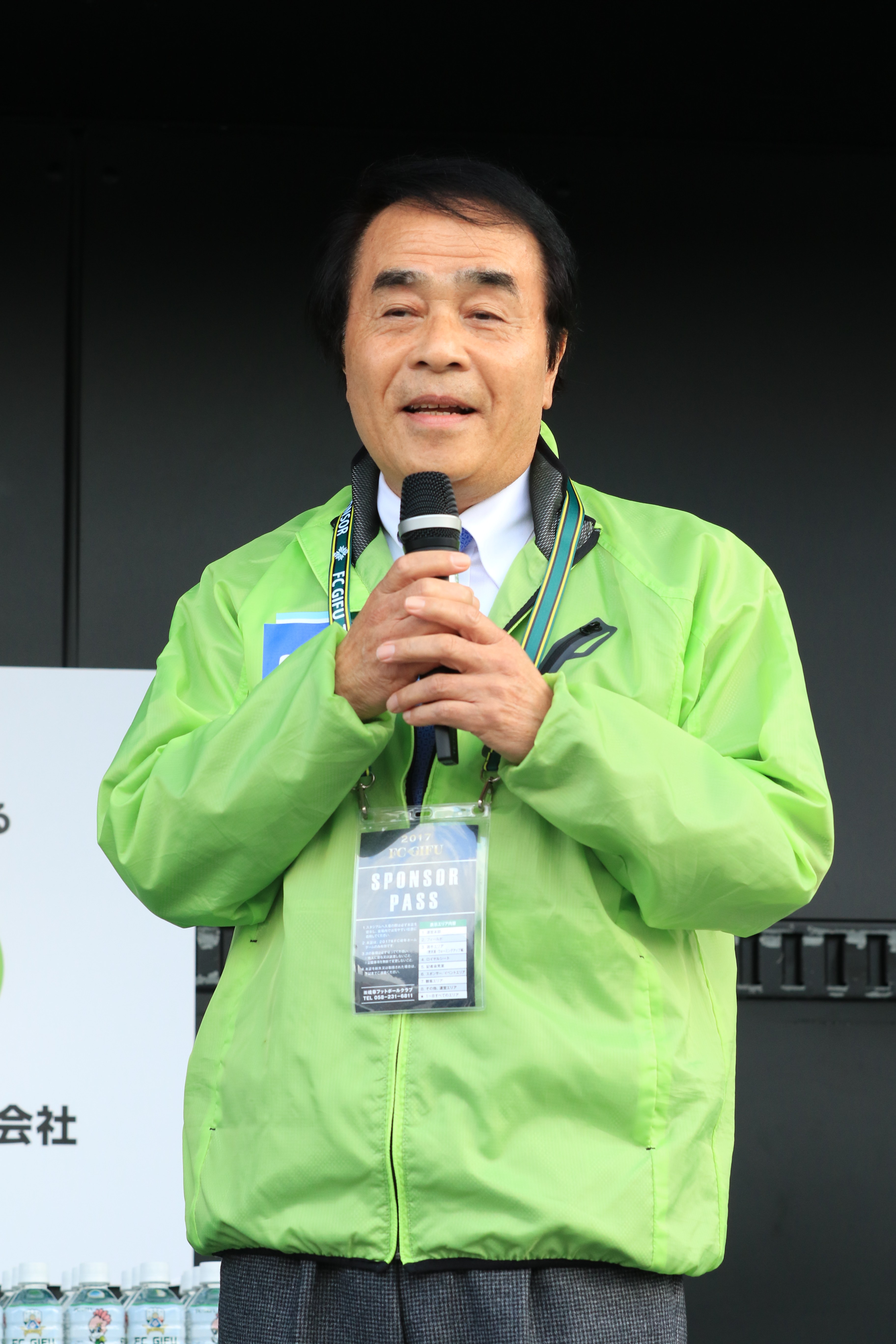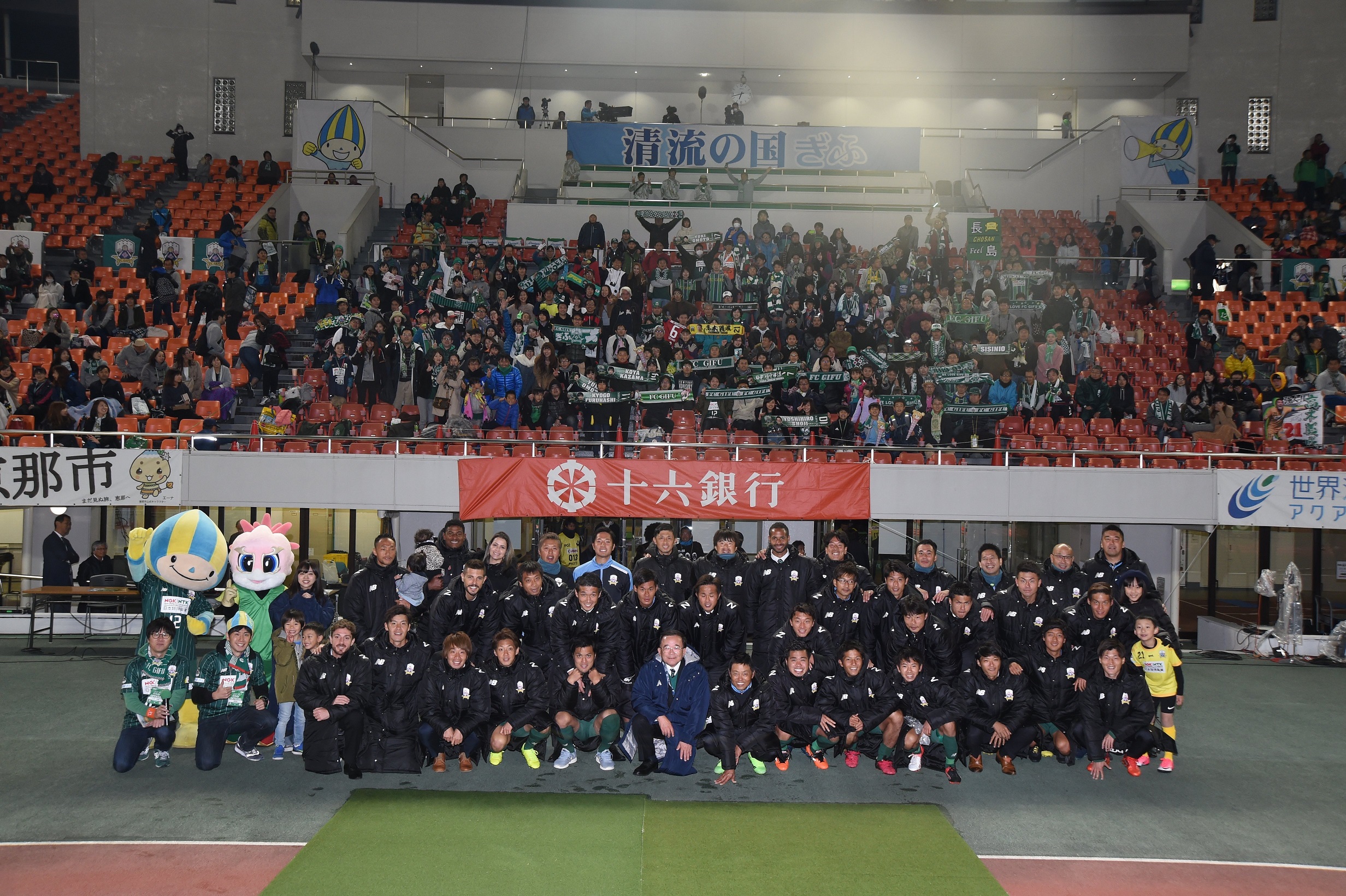 庄司悦大キャプテン、大木武監督、後援会の星野会長、FC岐阜宮田社長より、それぞれご挨拶をいただきました。