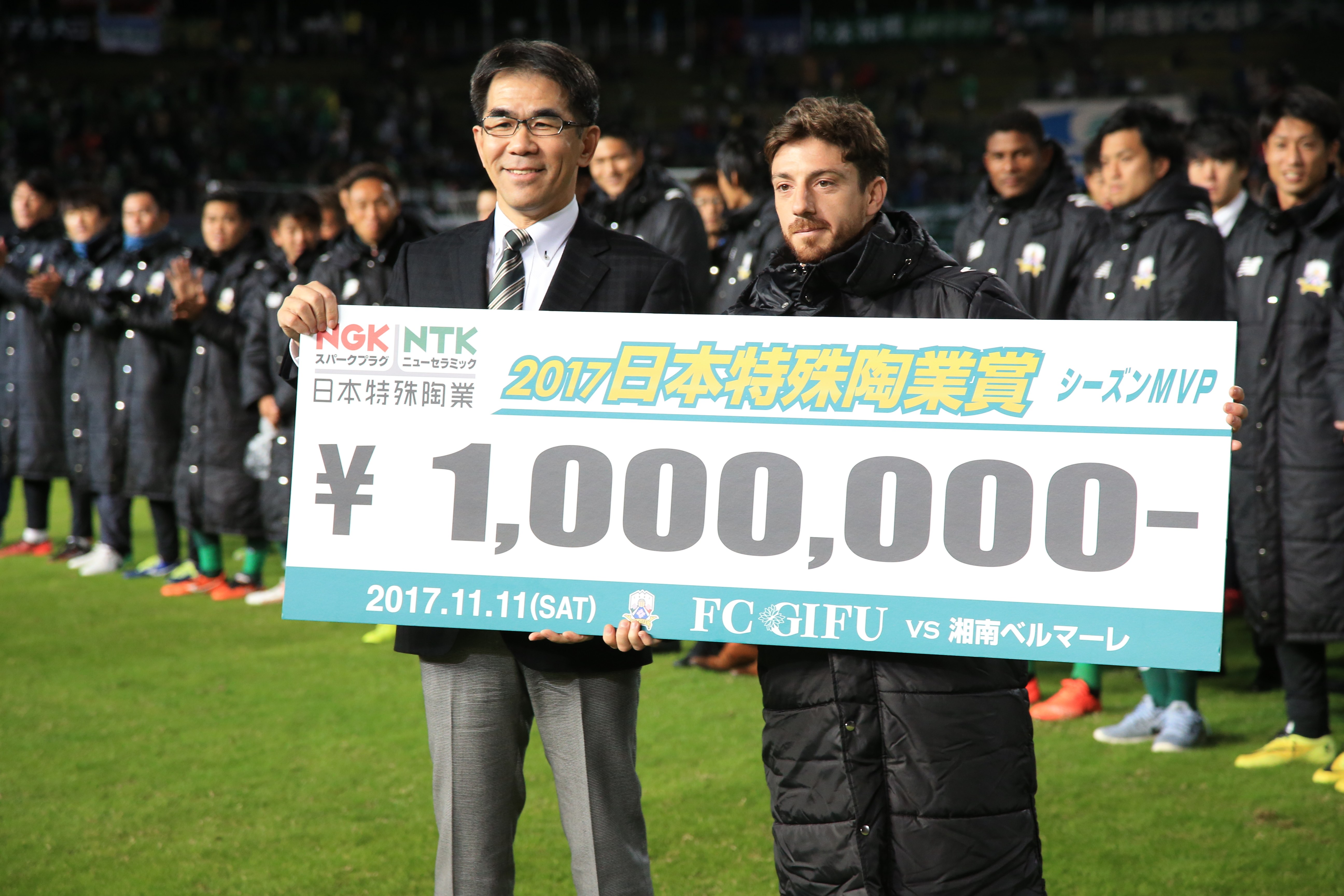 シーズンMVPは「シシーニョ選手」が受賞!!日本特殊陶業株式会社 取締役 執行役員 加藤 三紀彦様より、2017日本特殊陶業賞として100万円が贈られました!