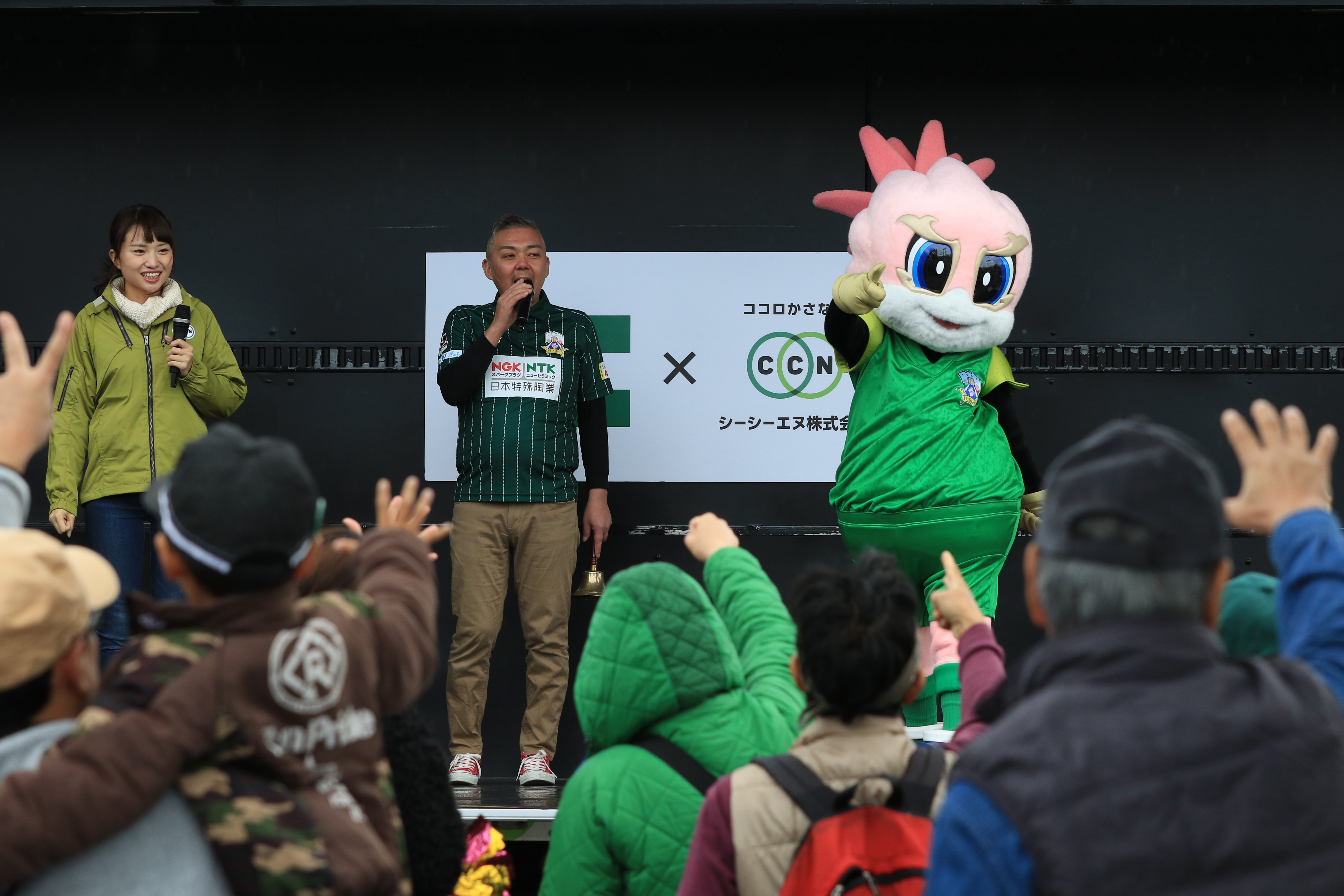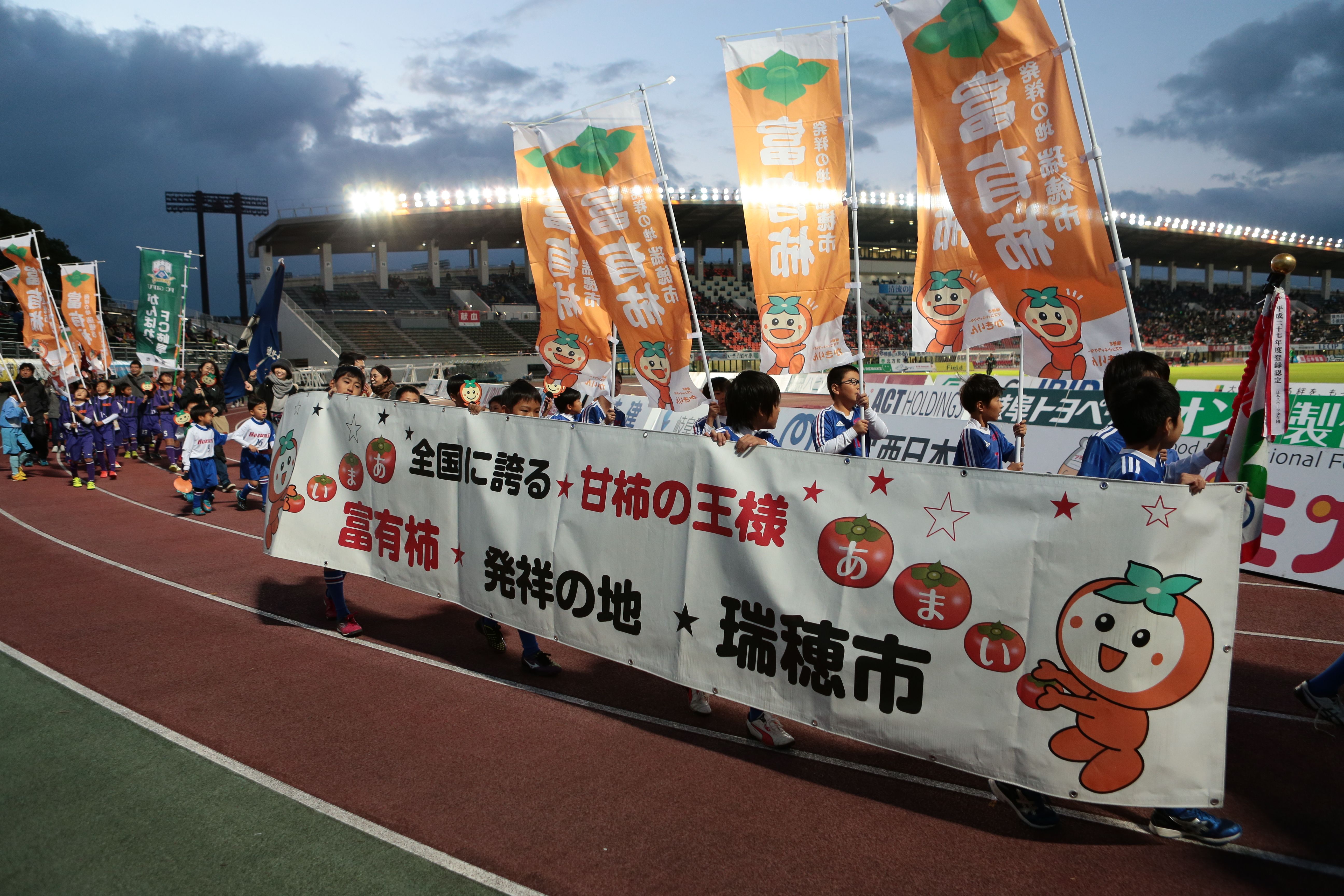 ハーフタイムには、よさこいチームの「富有楽猩」の皆さん、瑞穂市マスコットキャラクター「かきりん」、巣南サッカースポーツ少年団、穂積サッカースポーツ少年団、牛牧サッカースポーツ少年団、穂積北サッカースポーツ少年団の皆さんが、スタジアム内で瑞穂市のPRを行いました!
