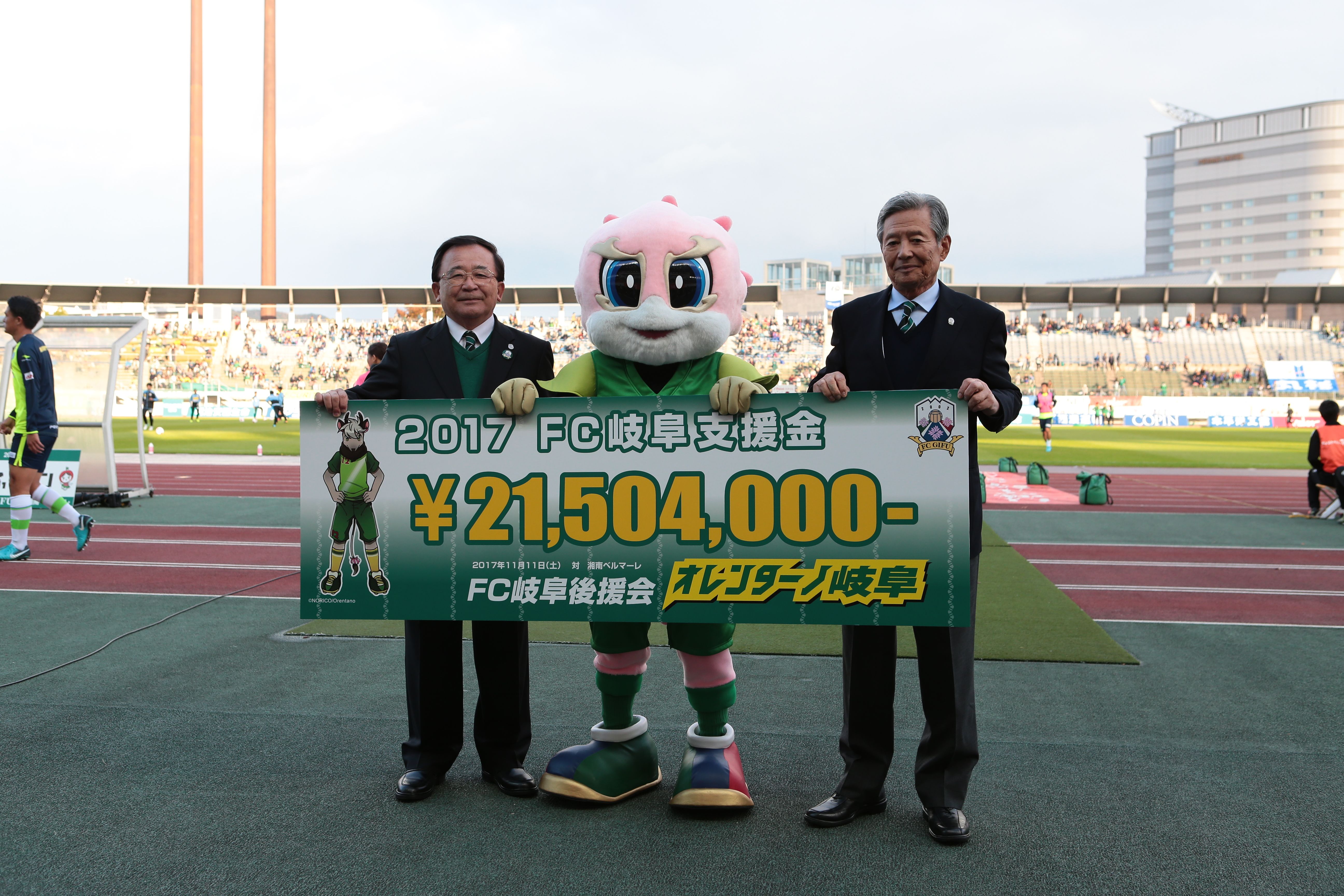 FC岐阜後援会(オレンターノ岐阜)から(株)岐阜フットボールクラブへの財政支援として2017シーズン後援会費より 21,504,000円〔(法人会員502口、個人会員4,156口分)の60%〕の支援をいただきました。ご支援ありがとうございました。