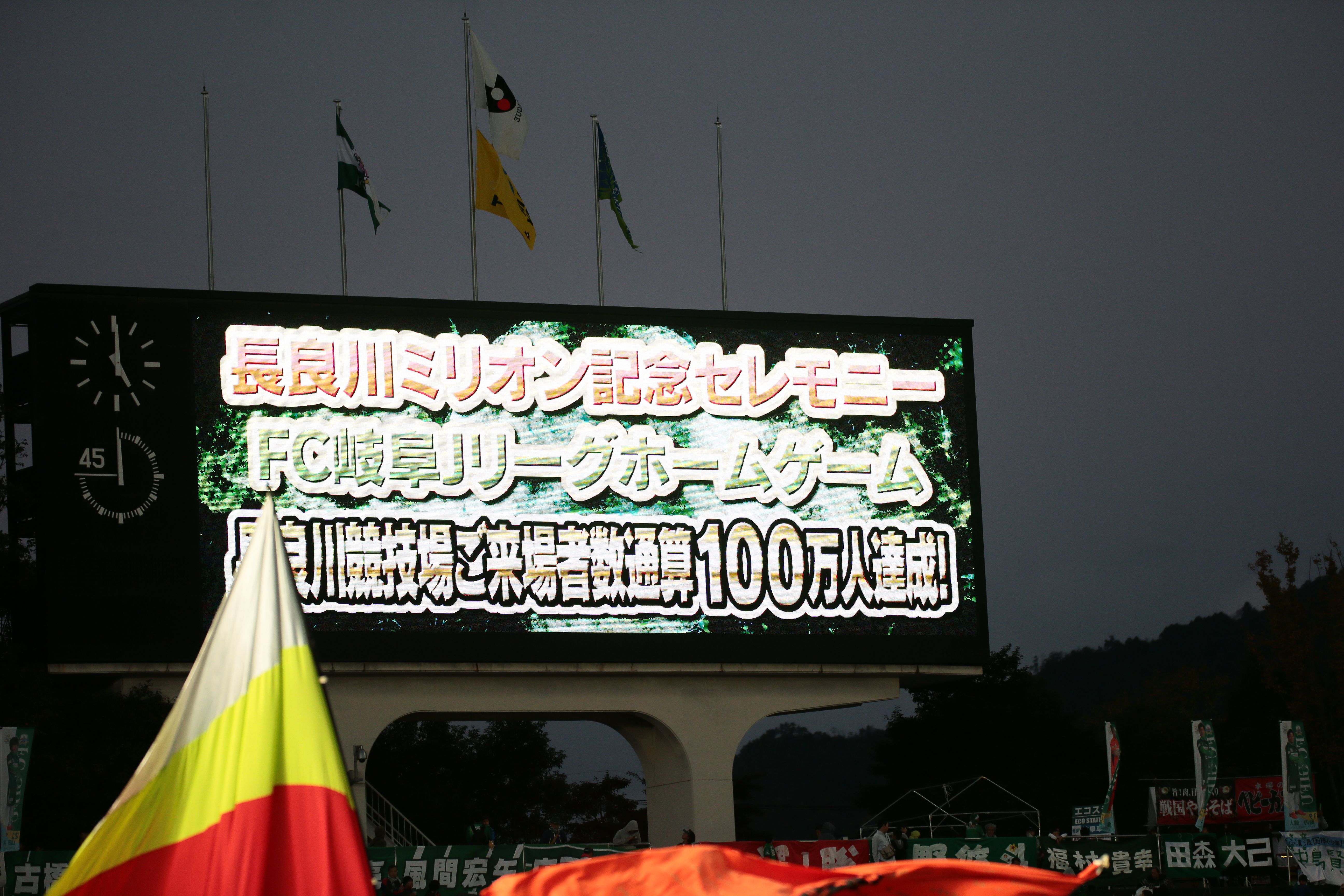 2008年にJリーグに加盟してから、ホームスタジアムである長良川競技場単独としての通算来場者数が100万人を超えることができました!本当に、本当にありがとうございます!