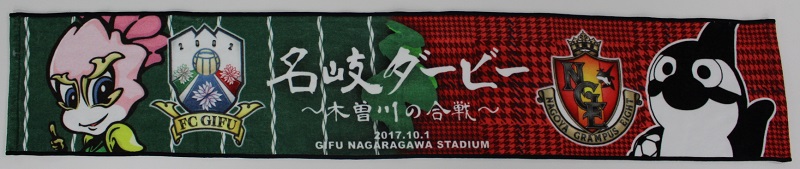 名岐ダービーの開催を記念したジャガード織りの限定タオルマフラー。