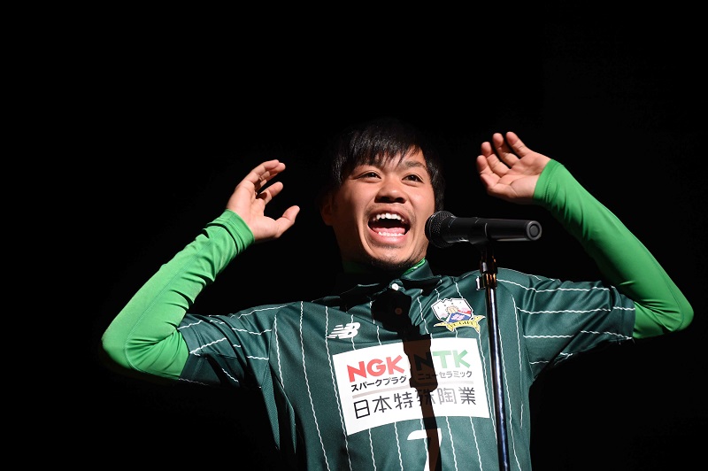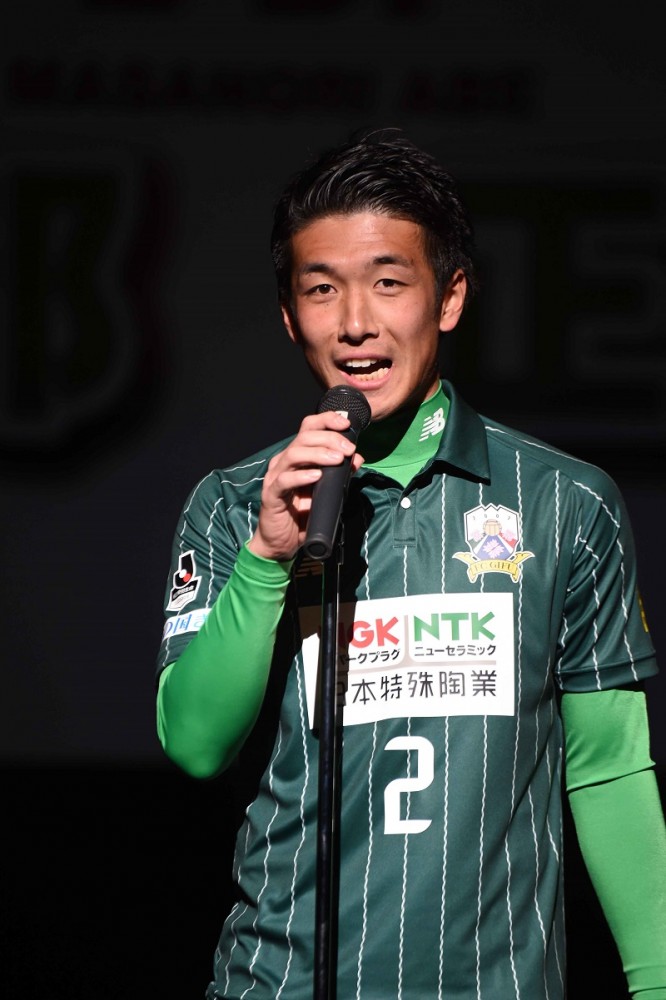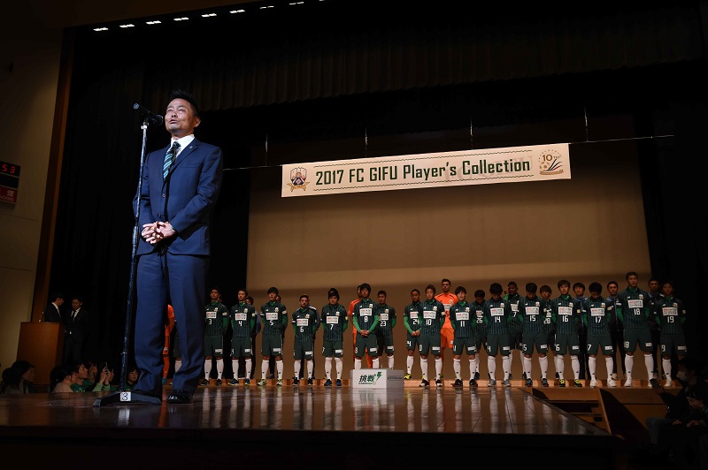 監督・コーチングスタッフ・全選手が登場して、チームを代表して大木武監督が「岐阜を変えていきましょう!」と熱いメッセージをファン・サポーターに送りました。