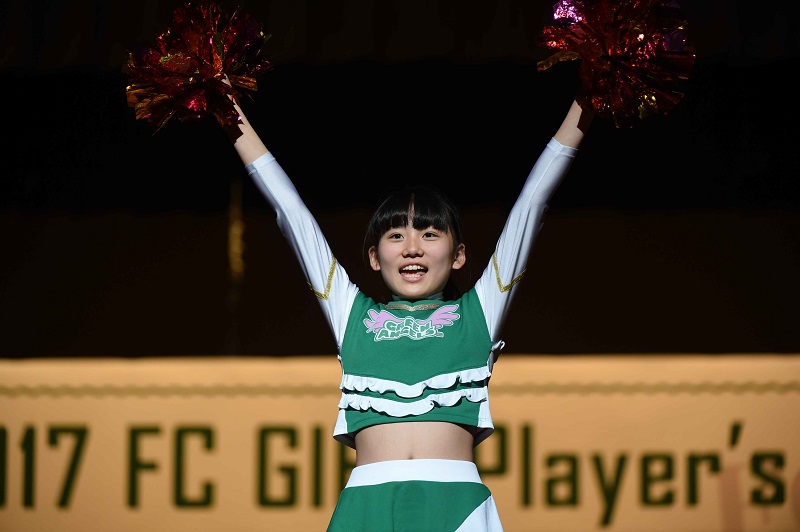 グリーンエンジェルズの皆さんのチアパフォーマンスでスタートした「FC GIFU Player`s Collection!!」は、主催者挨拶(株式会社岐阜フットボールクラブ代表取締役代表 宮田博之)、来賓挨拶(FC岐阜後援会名誉会長 古田 肇様)に続いて、オフィシャルユニフォームスポンサーを発表させていただきました。