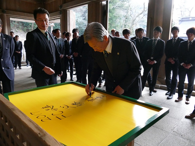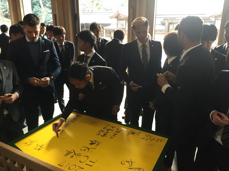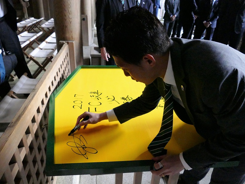 厳粛な神事に続いて、絵馬に2017シーズンの必勝の願いを込めて、サインを書き込みました。